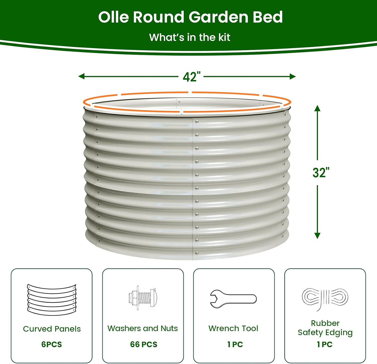 Olle 32" Tall, Raised Beds for Gardening Galvanized Raised Garden Beds Round Garden Bed Metal Flower Bed Outdoor, Backyard Garden Planter Box, Ivory