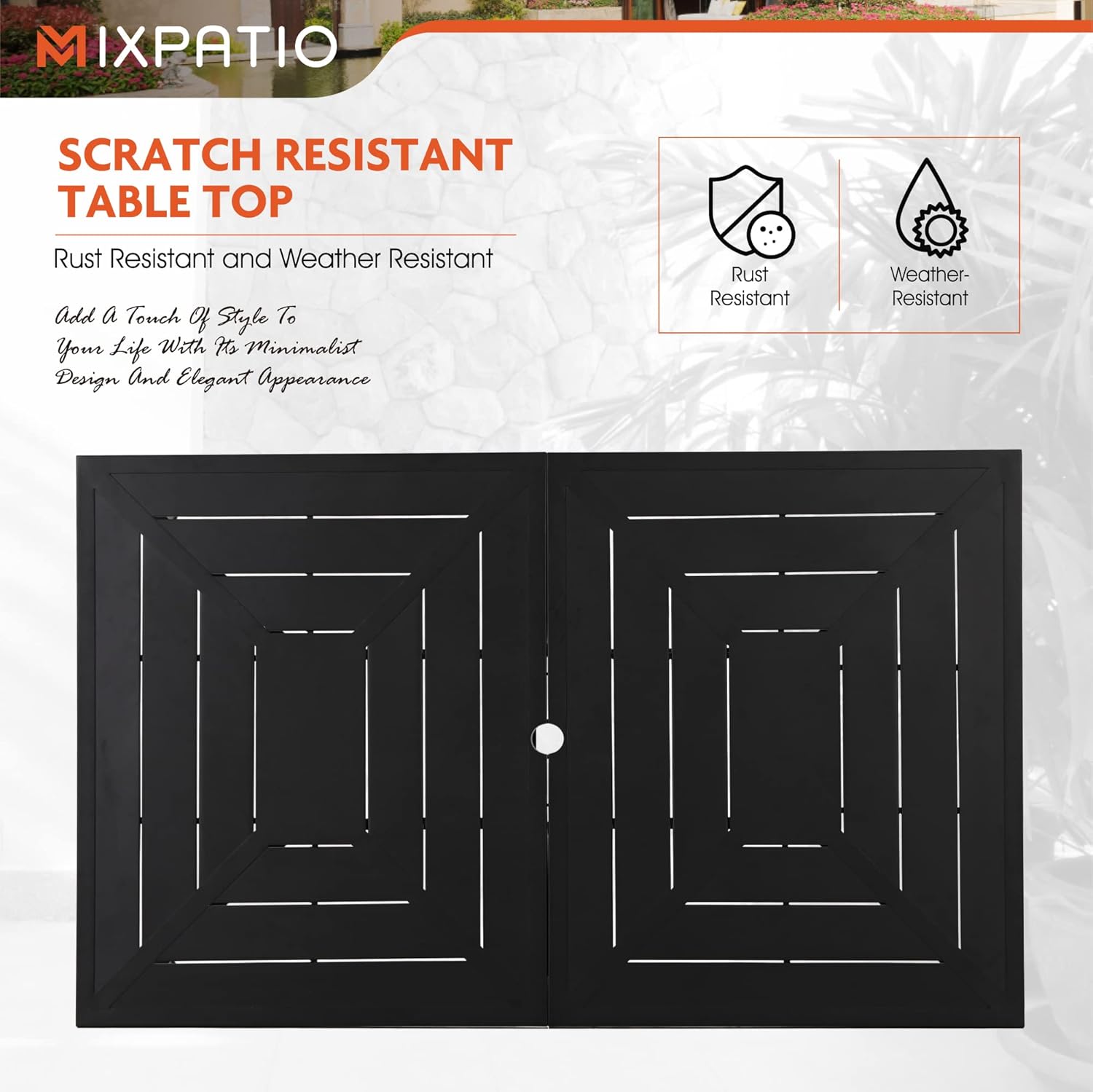 - Premium Material: Metal dining table, thick slatted metal table top, rust and weather resistant. Powder-coated matte finish, UV resistant and easy to clean with a damp cloth. Non-slip feet are suitable for uneven ground and prevent floor scratches