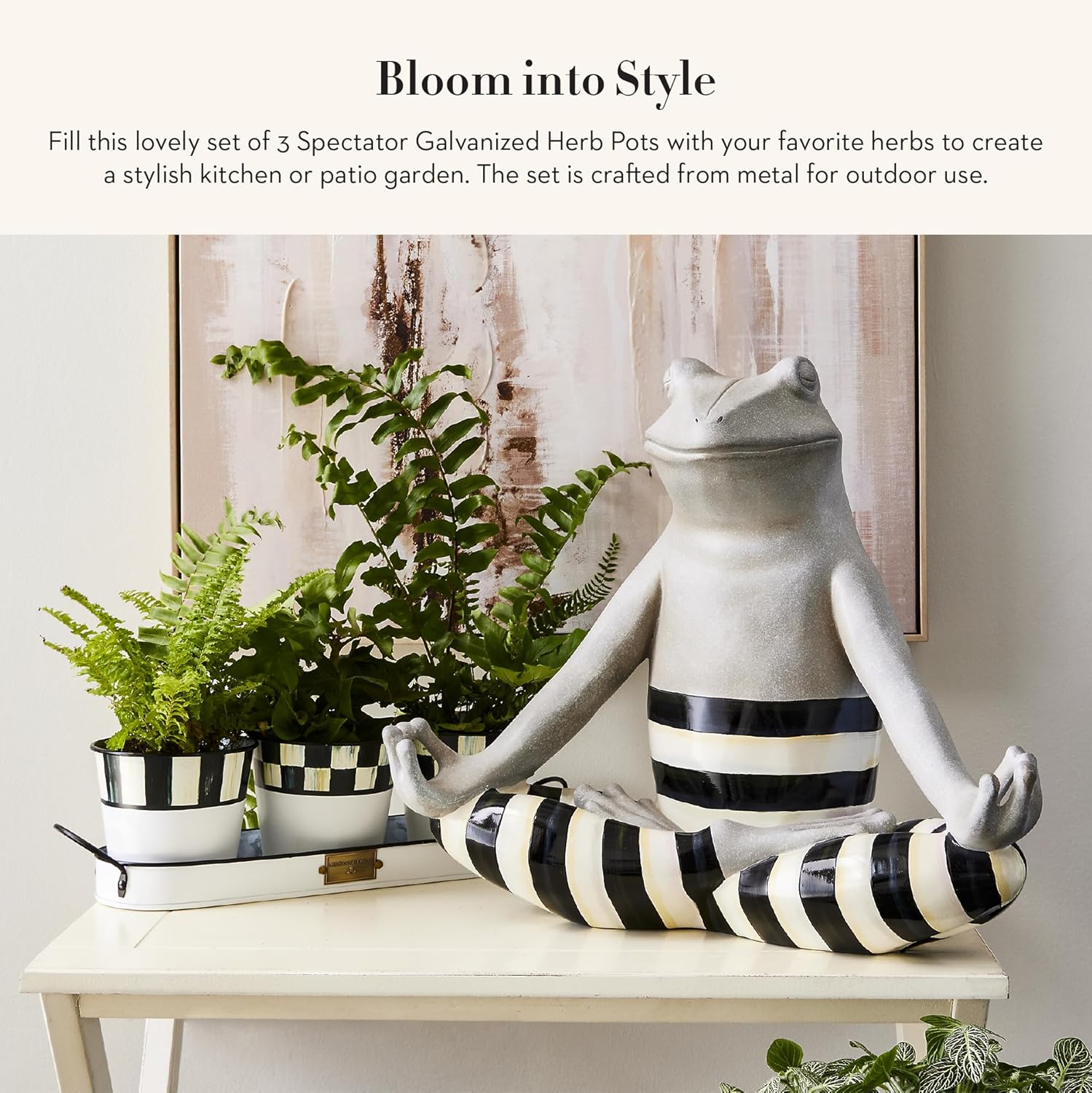 MACKENZIE-CHILDS Galvanized Herb Pots with Tray, Metal Herb Planters, Set of 3, Spectator