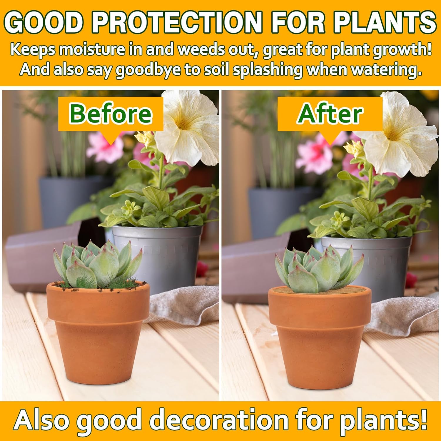 - Coconut Mulch Ring: You will get 10 pcs round coco fiber mat, which are enough for your daily needs, you can use them to keep weeds from growing; Cover them on the roots of small potted plants to look beautiful and tidy