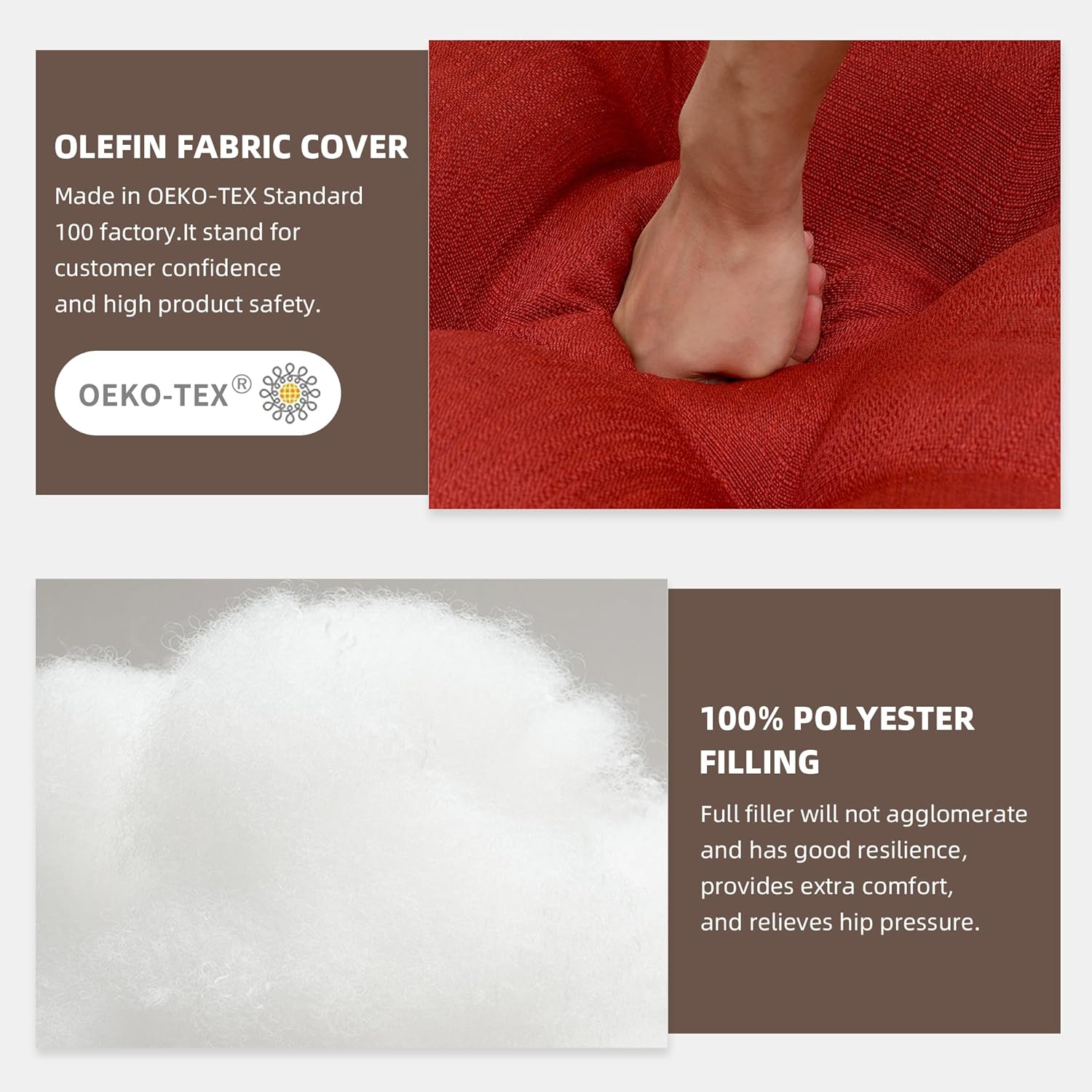 - Comfortable & Durable: RACE LEAF cushions are made of Olefin fabric cover and 100% polyester fiber filling. The cover fabric has been treated with solution-dyed to resist fading, light fastness can withstand up to 1,500 hours and still not fade. The filling is 100% polyester, will not agglomerate has good resilience, provides extra comfort, and relieves hip pressure