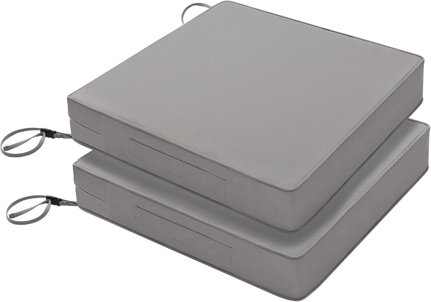 Favoyard Patio Chair Cushions 22 x 22 x 3 Inch Waterproof Outdoor Seat Cushions for Patio Furniture 3-Year Color Fastness Garden Sofa Couch Chair Pads with Handle & Adjustable Straps Set of 2, Grey