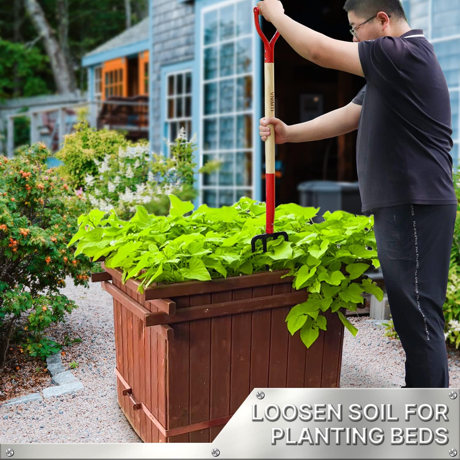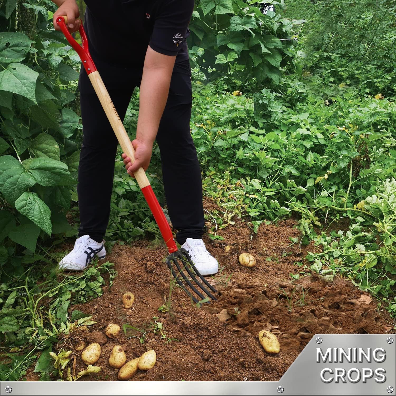 - 4. The pitch fork for mulching has an overall length of 45 inches and a weight of 4.5 lbs. It can be easily used by womenand elderly, Can be used as potato fork, pitch fork for gardening,pitch forks for barns, bedding fork,gardening fork etc.