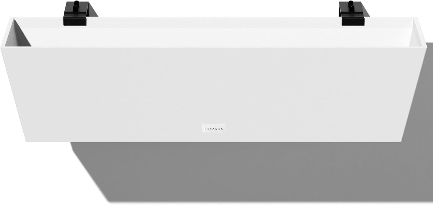 Veradek Pure Series Railing Planter - Plastic Hanging Planter for Outdoor Balcony/Fence | Durable All-Weather Use with Adjustable Brackets | Modern Décor for Flowers, Succulents, Hanging Plants