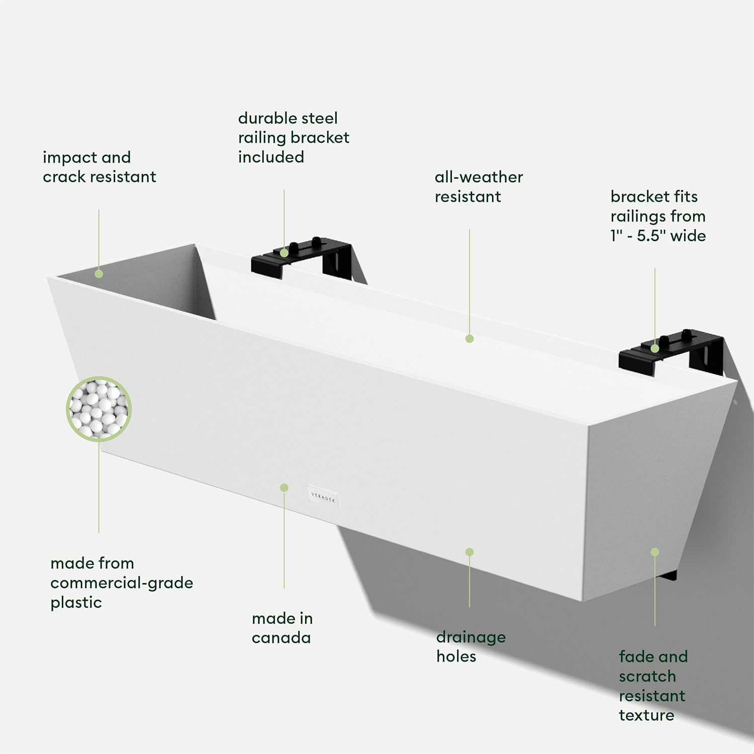 - PROUDLY MADE IN CANADA - Designed and made in Canada, so you can rest assured that your Veradek railing planter will be of the highest quality and last all year round