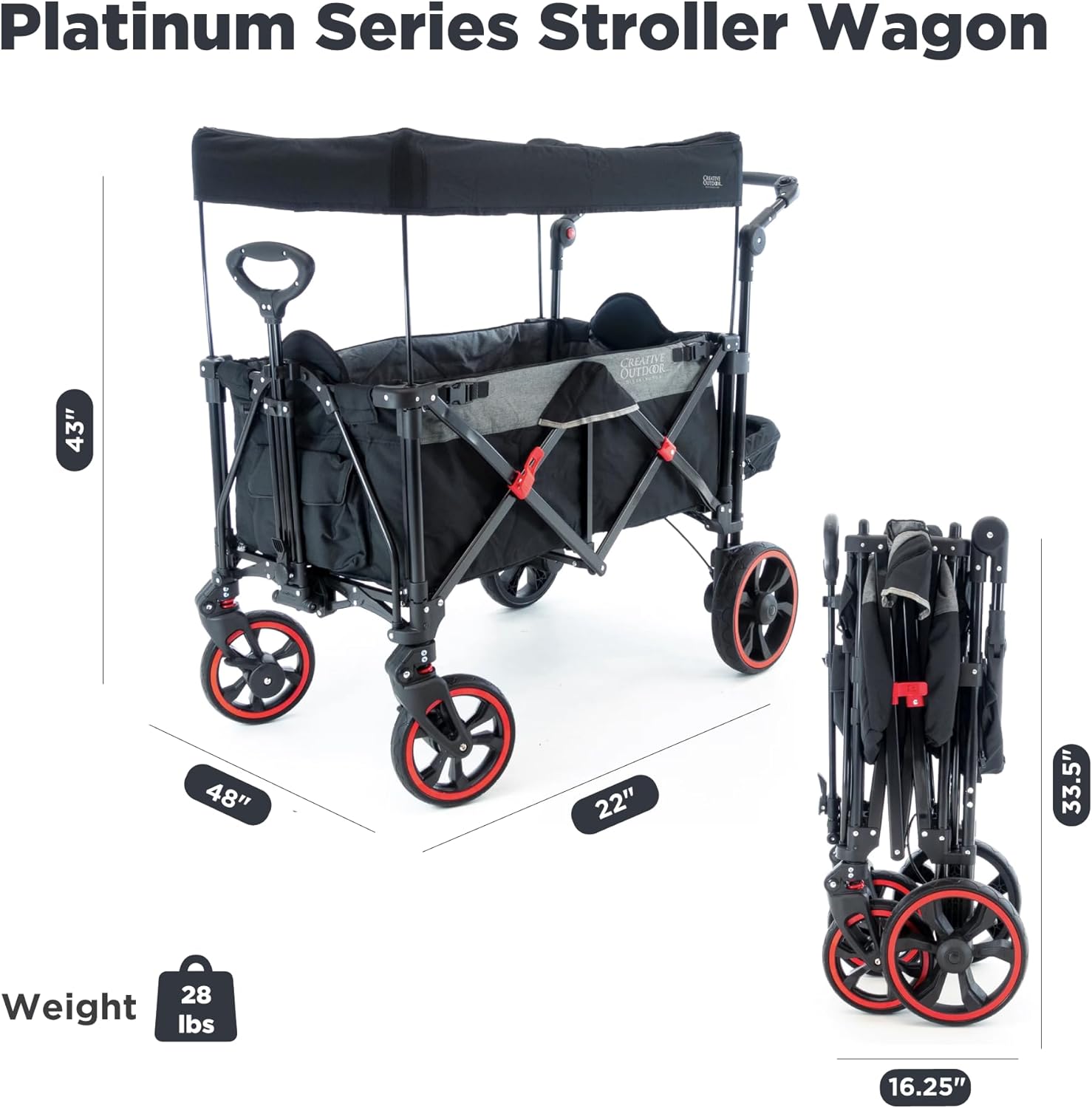 Creative Outdoor Push Pull All-Terrain Collapsible Folding Stroller Wagon for Kids, 150lbs Weight Capacity, Platinum Series, Beach, Park, Garden & Tailgate, (Black)