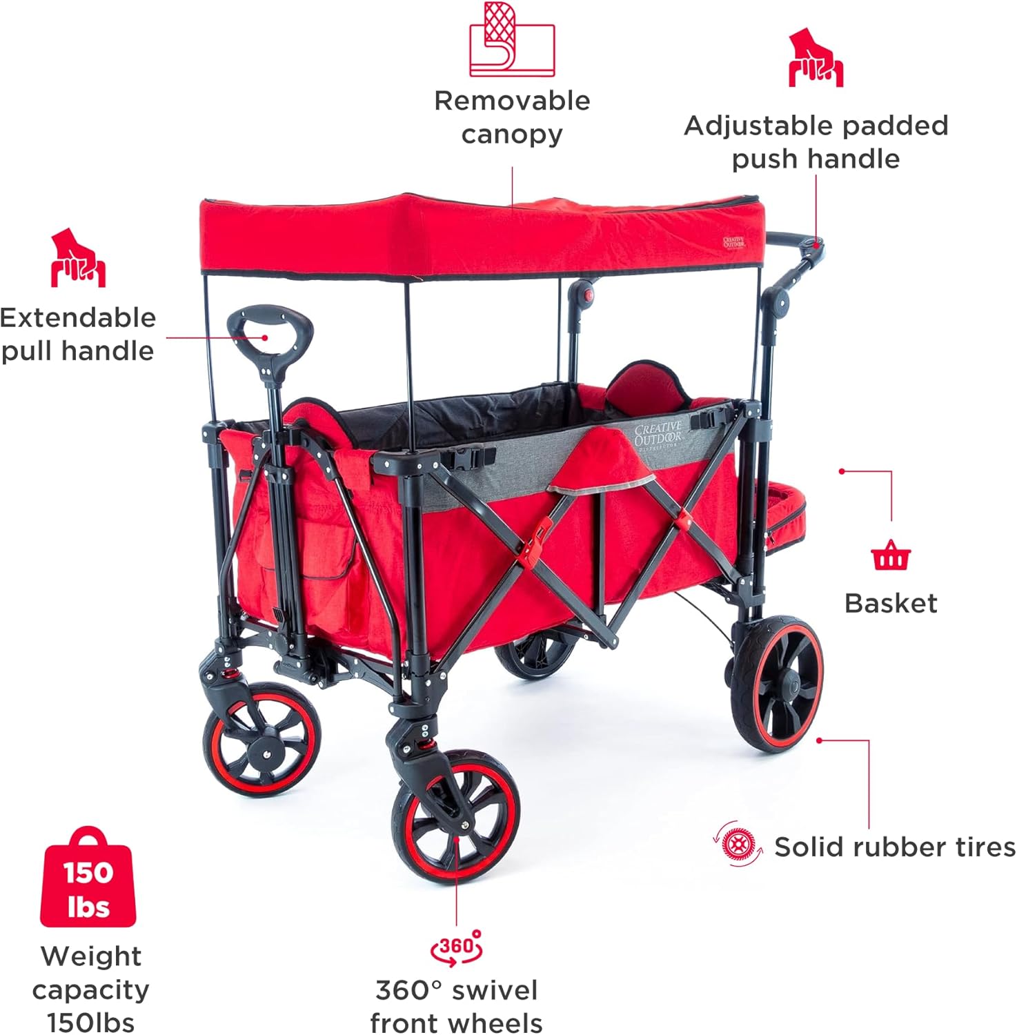 Creative Outdoor Push Pull All-Terrain Collapsible Folding Stroller Wagon for Kids, 150lbs Weight Capacity, Platinum Series, Beach, Park, Garden & Tailgate, (Red)