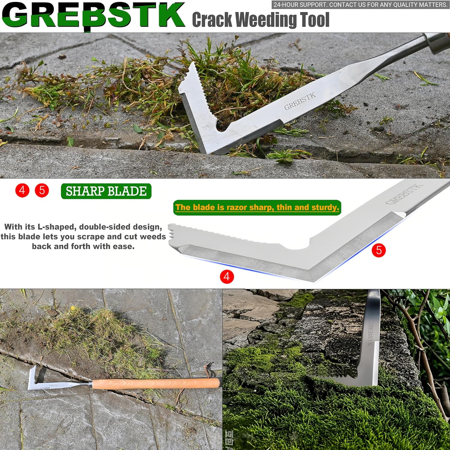 - The GREBSTK brand manual weeder help remove weeds and grass from between patio stones and driveway cracks. Perfect weeder for gardens and especially sidewalk cracks and other tight spaces.