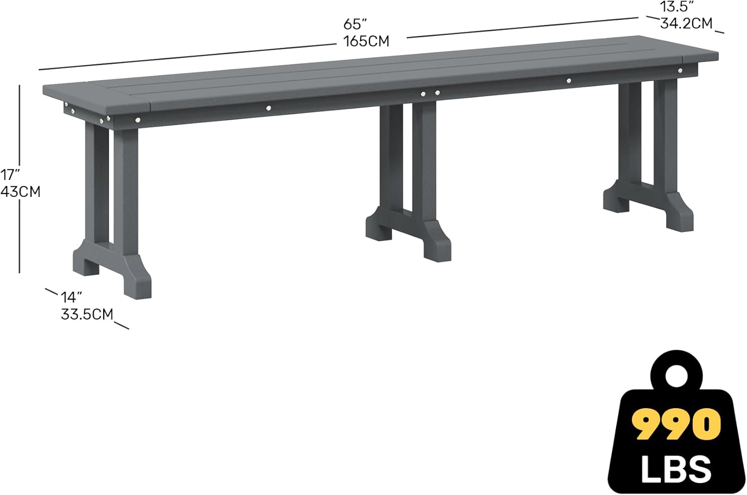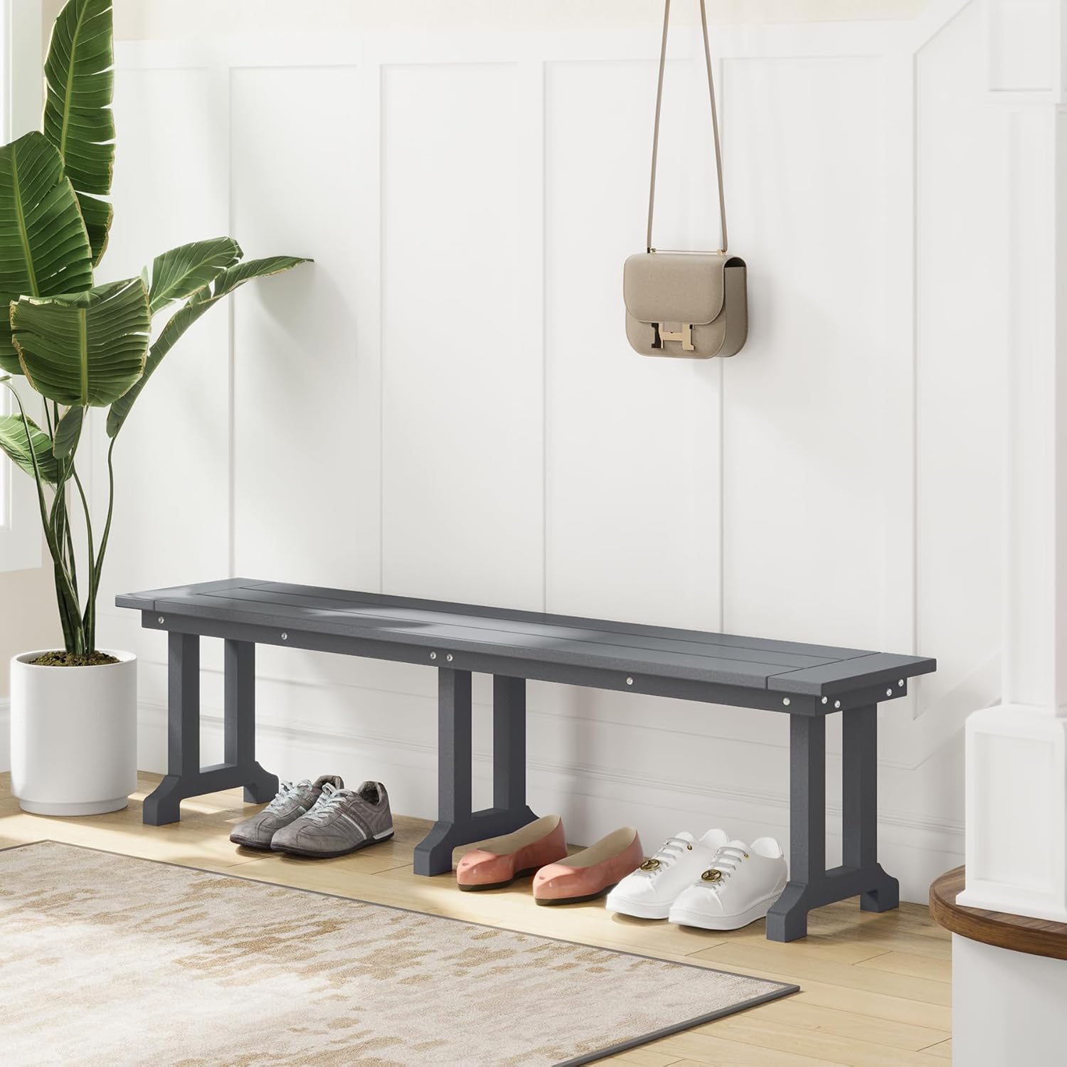 Outdoor Benches Weatherproof, Park Long Bench Poly Lumber Backless for Entryway Front Porch Garden Bench Seat for Patio, Gray