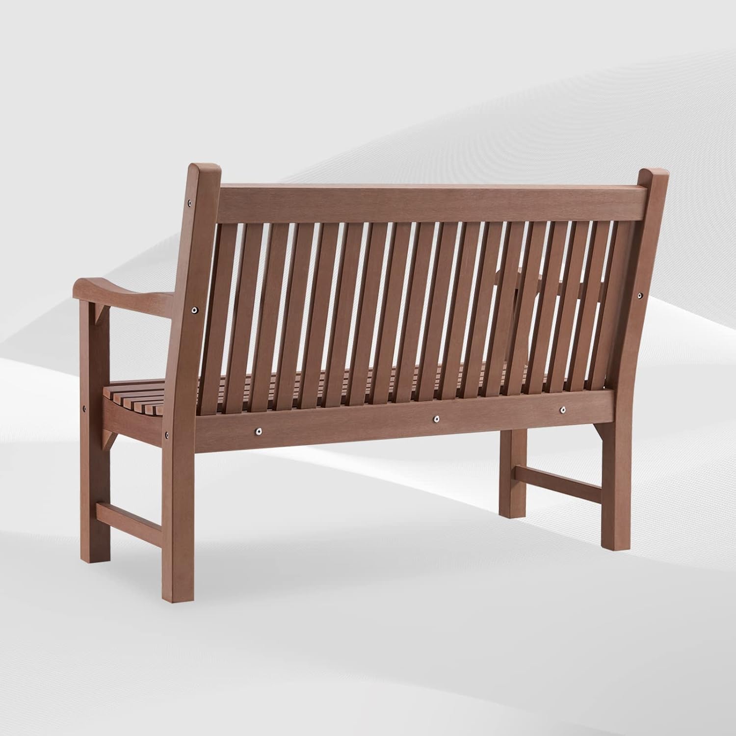 Psilvam Garden Bench, 2-Person Poly Lumber Patio Bench, All-Weather Outdoor Bench That Never Rot and Fade, Suit for Garden, Porch and Park(Brown)