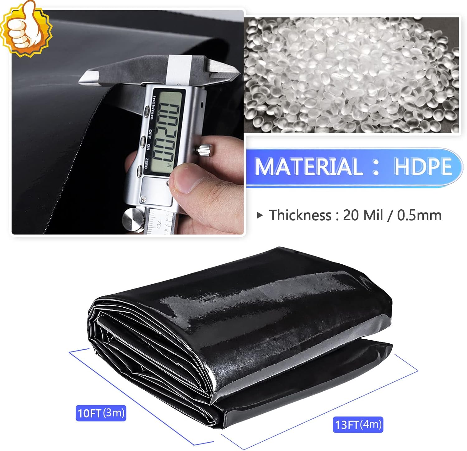 - [Safety Material] Koi Pond Liner is made of HDPE material, it has good softness, extensibility, 20 mil thickness liner is UV and puncture resistant, contains no plasticizers that can be used in outdoor ponds for a long time.