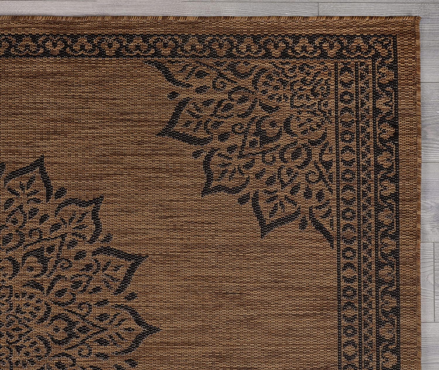 CAMILSON Outdoor Rug 8x10 Medallion Nut Brown Black Modern Area Rugs for Indoor and Outdoor Patios, Kitchen and Hallway Rug, Washable Porch Deck Outside Carpet (8 x 10)
