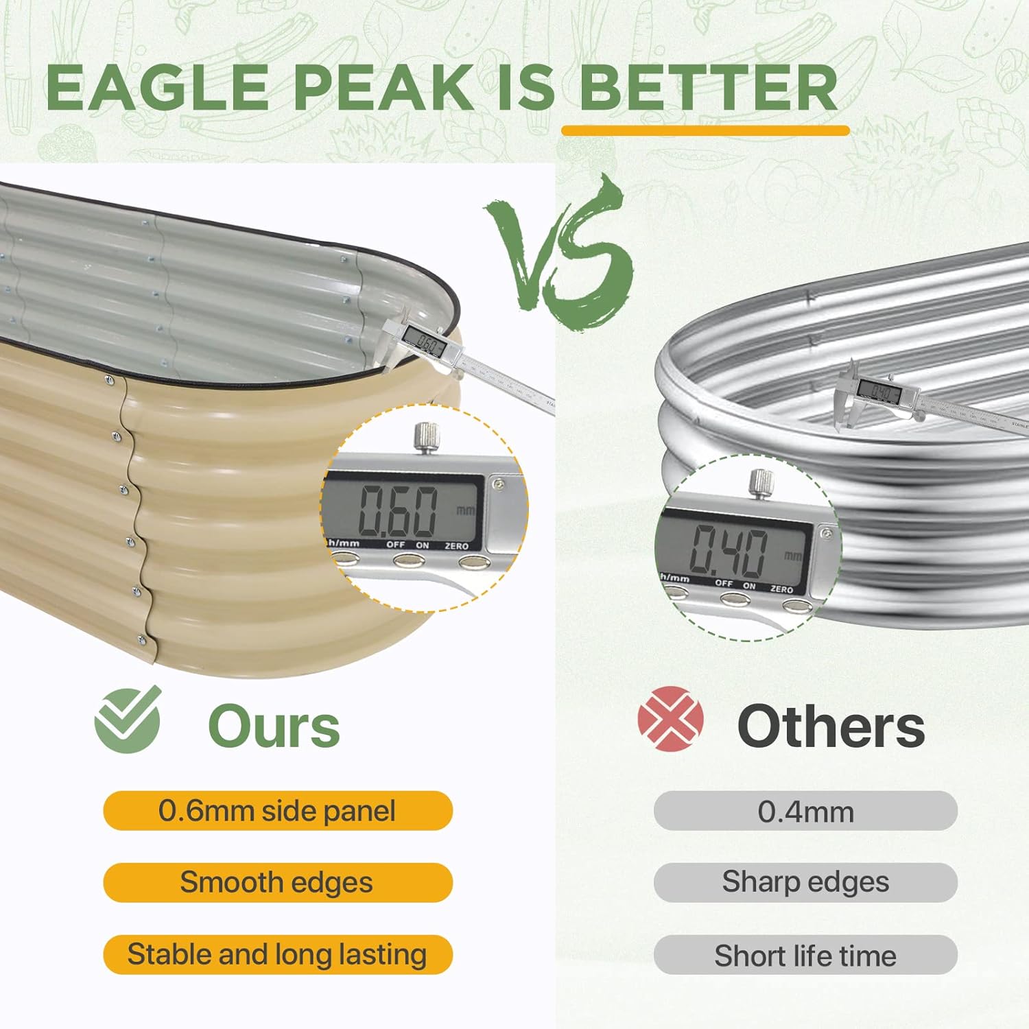 - HEAVY DUTY STEEL PANELS: This oval raised bed is made of corrugated steel with Zinc-Aluminum coating, 6mm side panel with 8mm corner steel panel. It much more durable than plastic or wood garden beds.