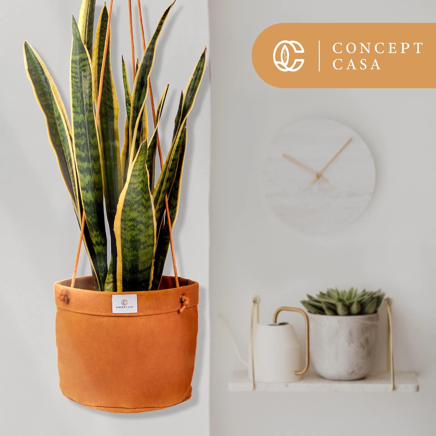 - Its carefully crafted waxed canvas material comes fastened with 3 flexible, weight-bearing ropes to hold your indoor plants in place and keep your plant pot in shape. The ropes of our hanging planter measure 24” in length, giving you enough length to work with. Shorten or lengthen by readjusting the knots to your desired height and voila!