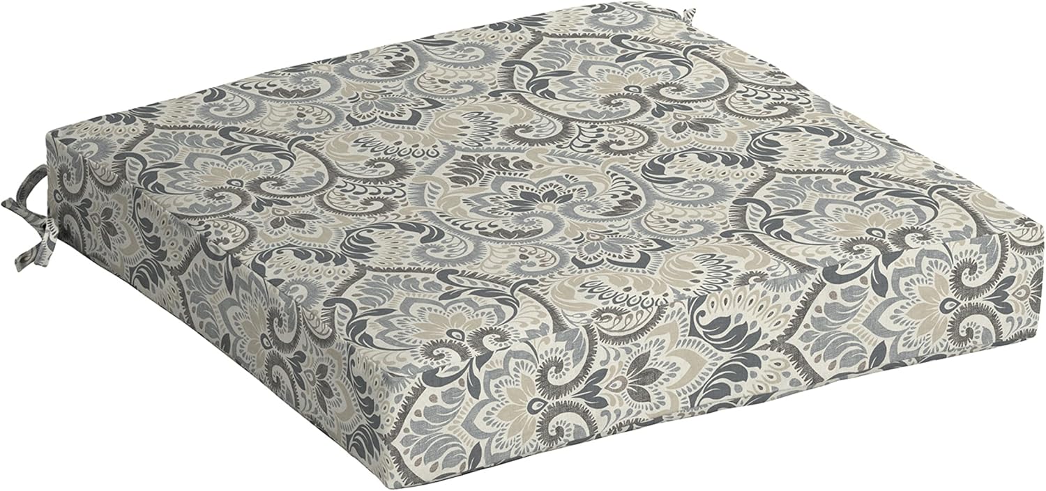 Arden Seat Cushion, 21 x 21, Rain-Proof, Fade Resistant, Cushion for Patio Dining, Adirondack, and Outdoor Chairs Neutral Aurora Damask