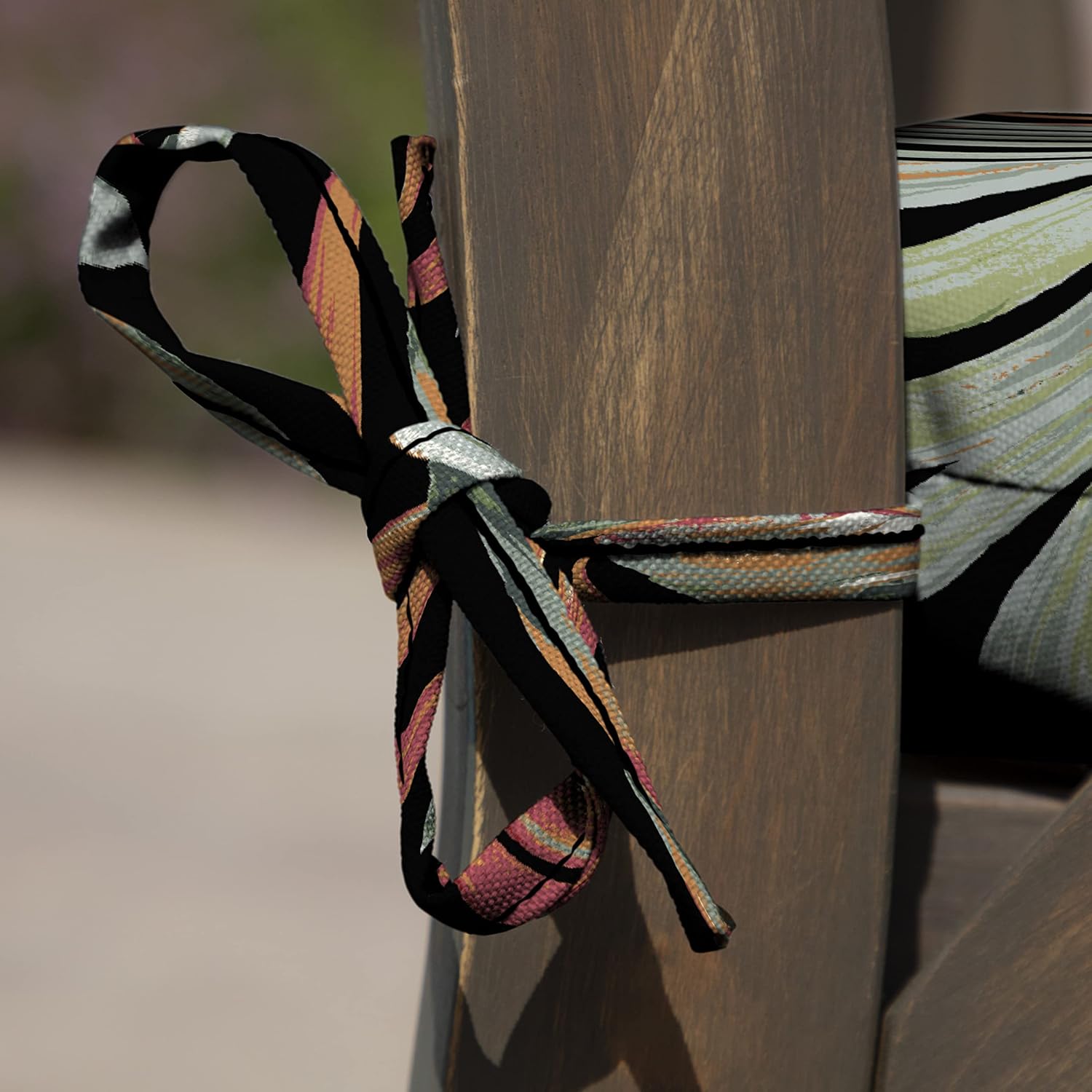 - ARDEN Indoor/Outdoor Seat Cushion or Rocking Chair Cushion fits most standard dining, chair, or rocking chairs. It measures 19 in W x 18 in L x 2.5 in D. and includes 2 sets of ties to keep your cushion firmly in place.