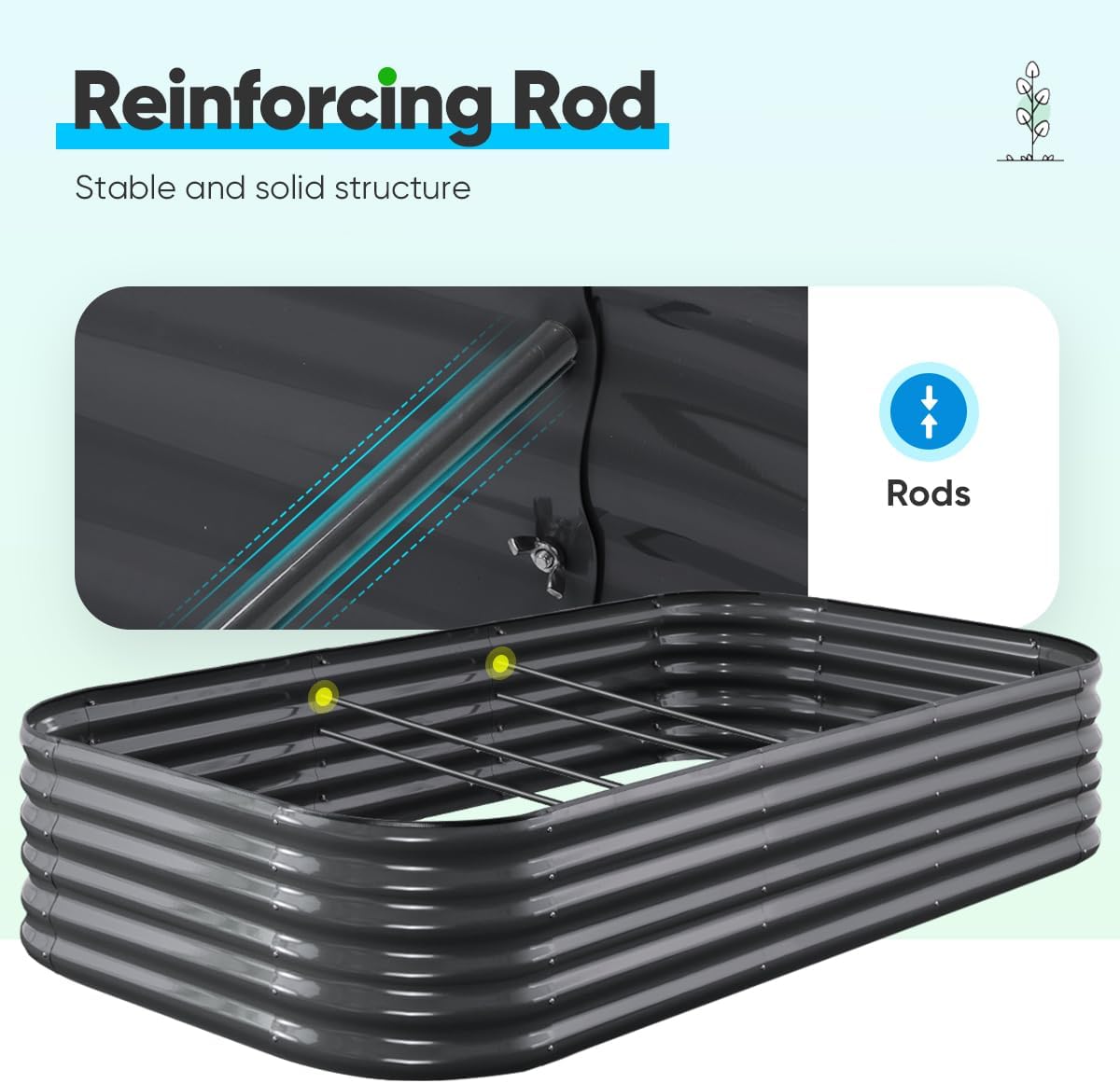 - 【Rubber Strip Edging】Garden bed kit includes a rubber strip for covering sharp edge, it is safe when you and your family growing plants, watering or plucking fruits. You can use them without any caution, even children can get as close as possible to learn and take care of plants.