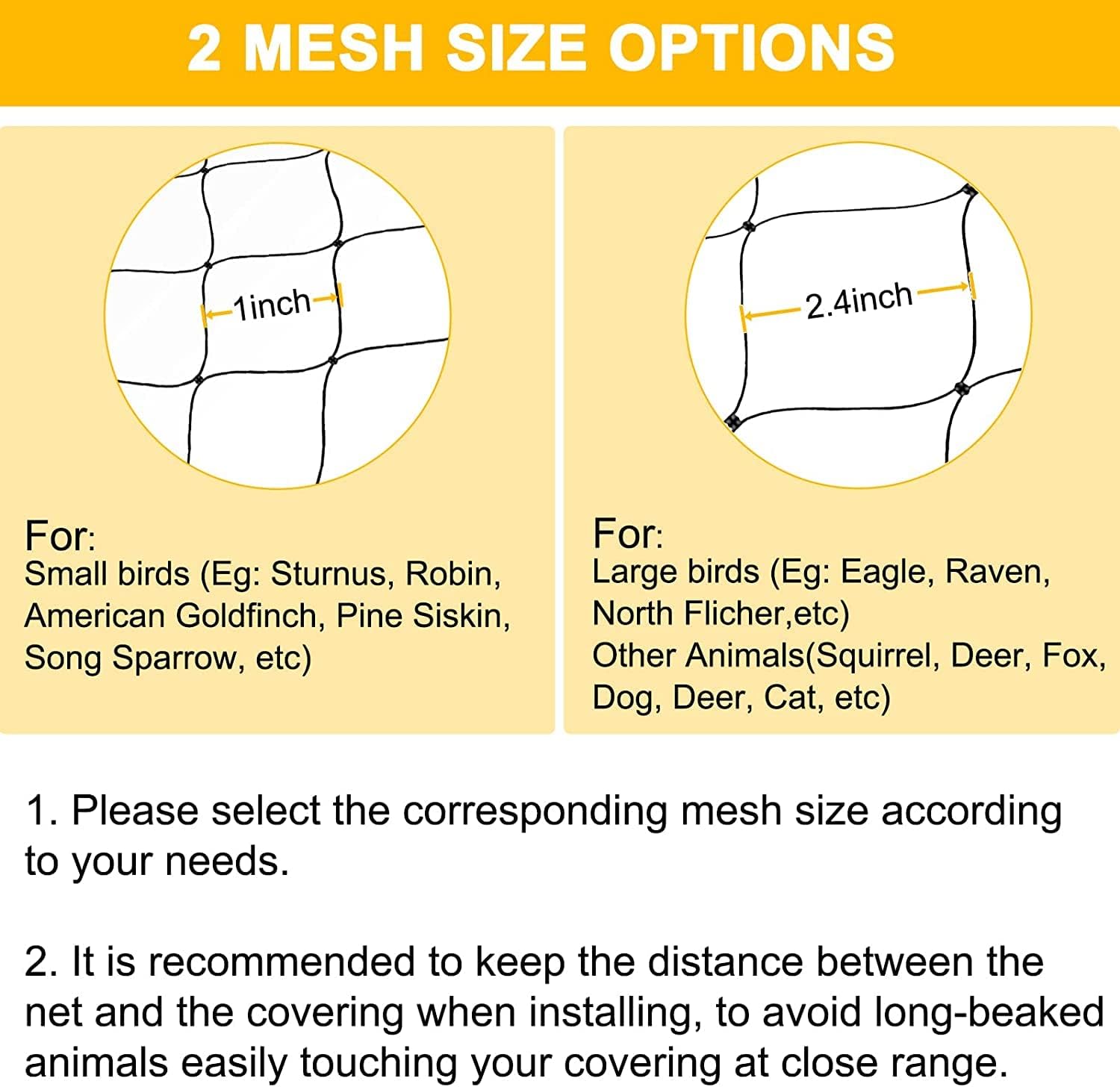 - 【Effective Protection】Our 2.4 inch mesh netting provides maximum protection without harming birds and small animals or interfering with plant growth. Bird netting as an outdoor cover like a fence, bird proof barrier is a physical barrier, which is wildlife friendly stops animals from damaging garden areas.
