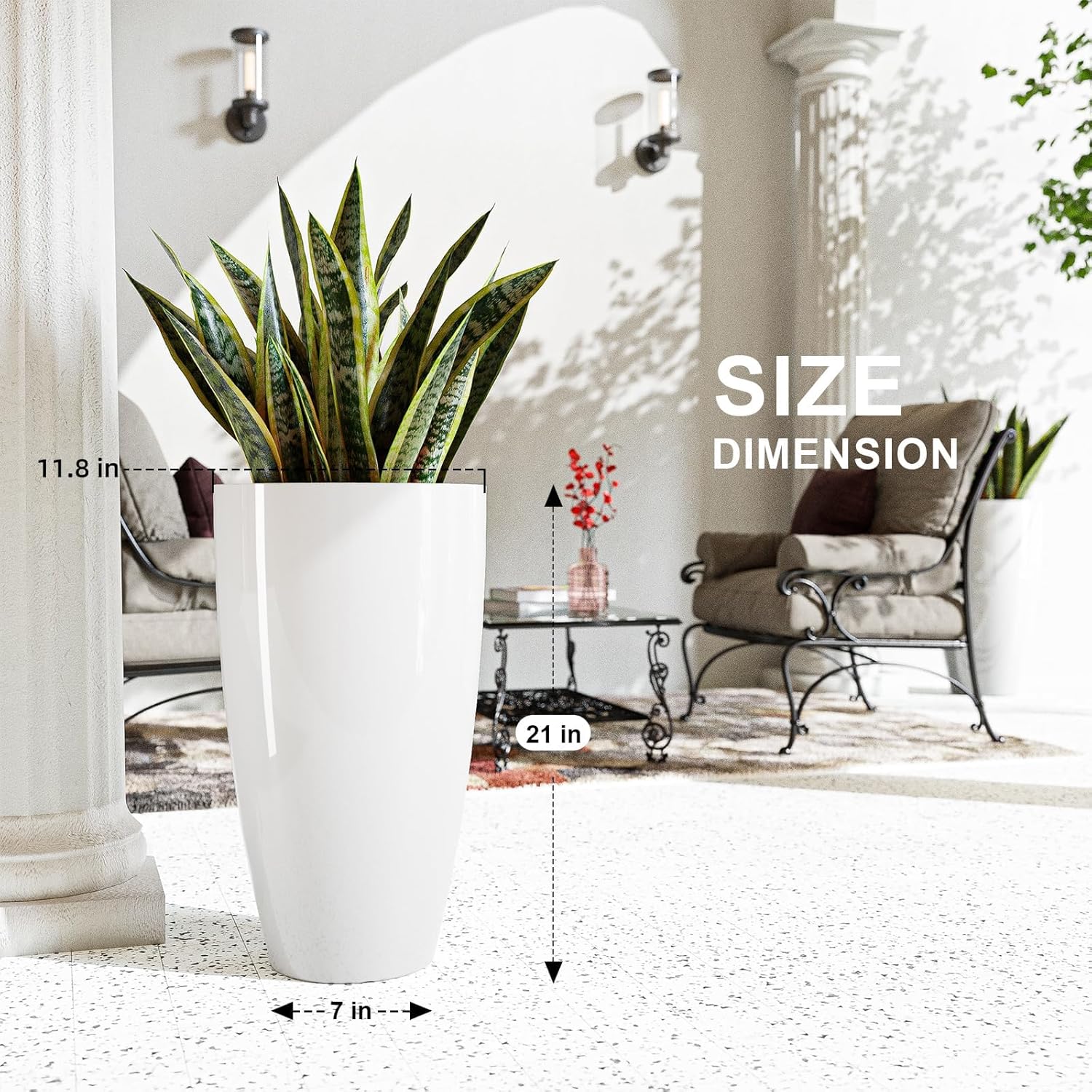 - Lightweight And UV Resistant: Set of 2 lightweight, tall outdoor planters made from durable, UV resistant plastic that can withstand harsh weather conditions.