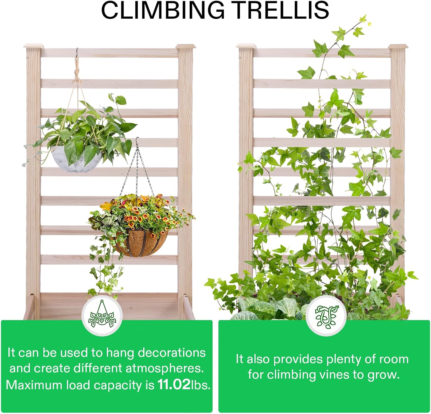 - Maximize Your Space: Dimensions: 48.6"(L) x 23.2"(W) x 29.9"(H); This planter is designed with a built-in trellis for climbing plants or fruit; Grow decorative plants or any kind of plant that needs a little support