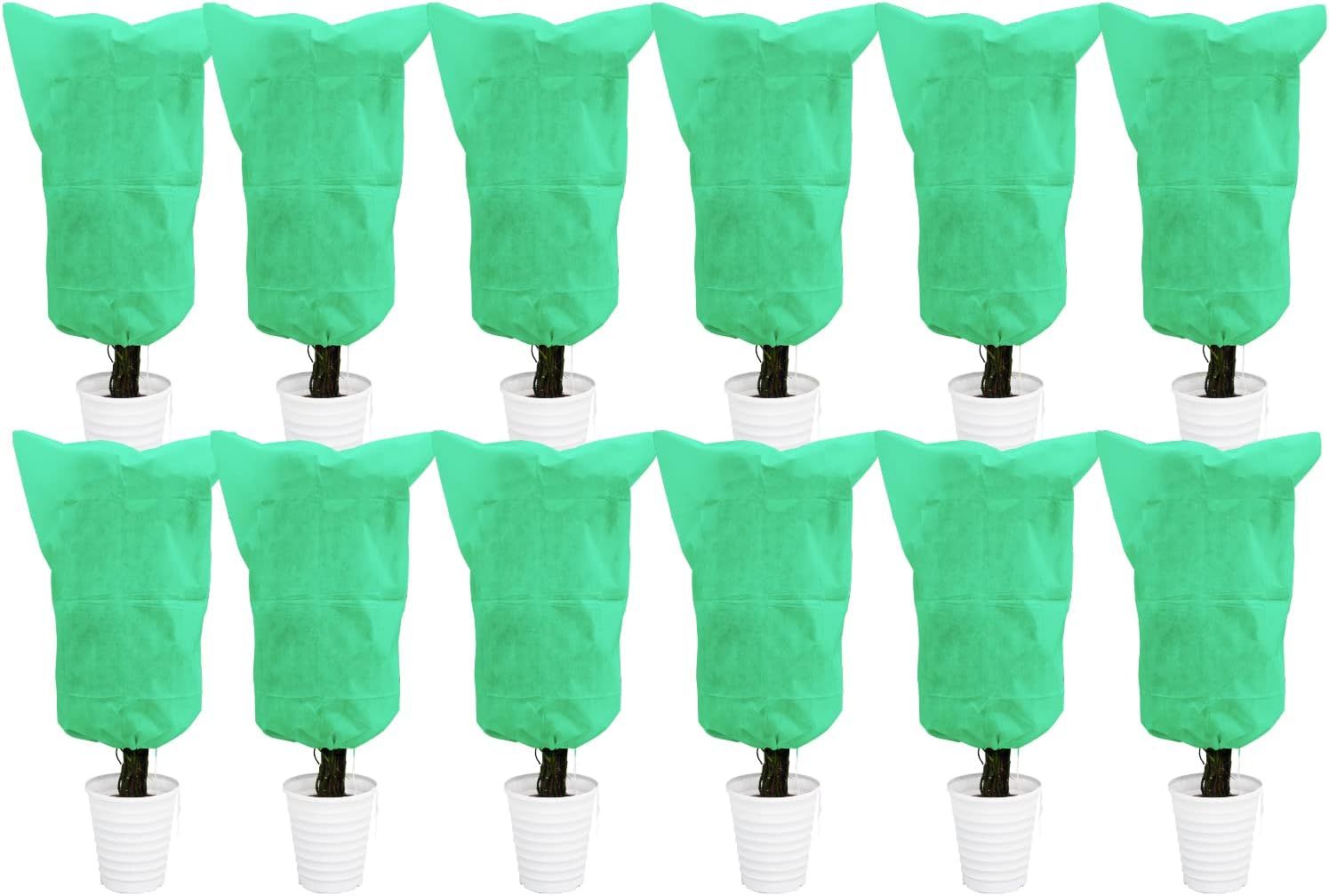 EAONE 12 Pack Plant Covers Freeze Protection, 32x47'' Winter Frosts Cloth for Outdoor Plants, Reusable Frost Blankets Drawstring Bags for Cold Freeze Sun Protection Bird Insect Prevention,Green