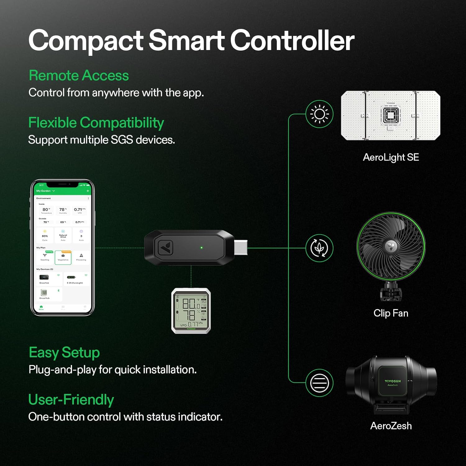 - The GrowHub E25: Connect with the Vivosun Smart Grow System, allowing you to monitor and control the AeroLight by the Vivosun App; connect a wide range of equipment and design Grow Recipes that will take your plant from seed to harvest automatically