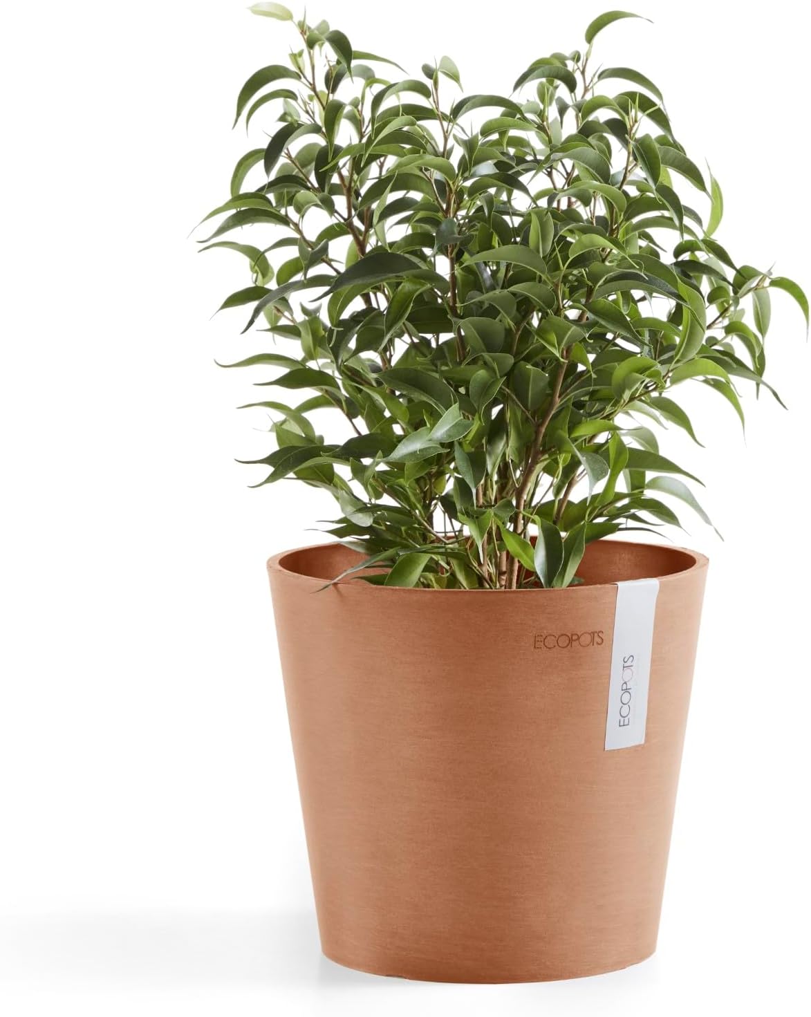 Ecopots Amsterdam Mini Durable Modern Round Recycled-Based Composite Flower Pot Planter, Terracotta Color, 7"