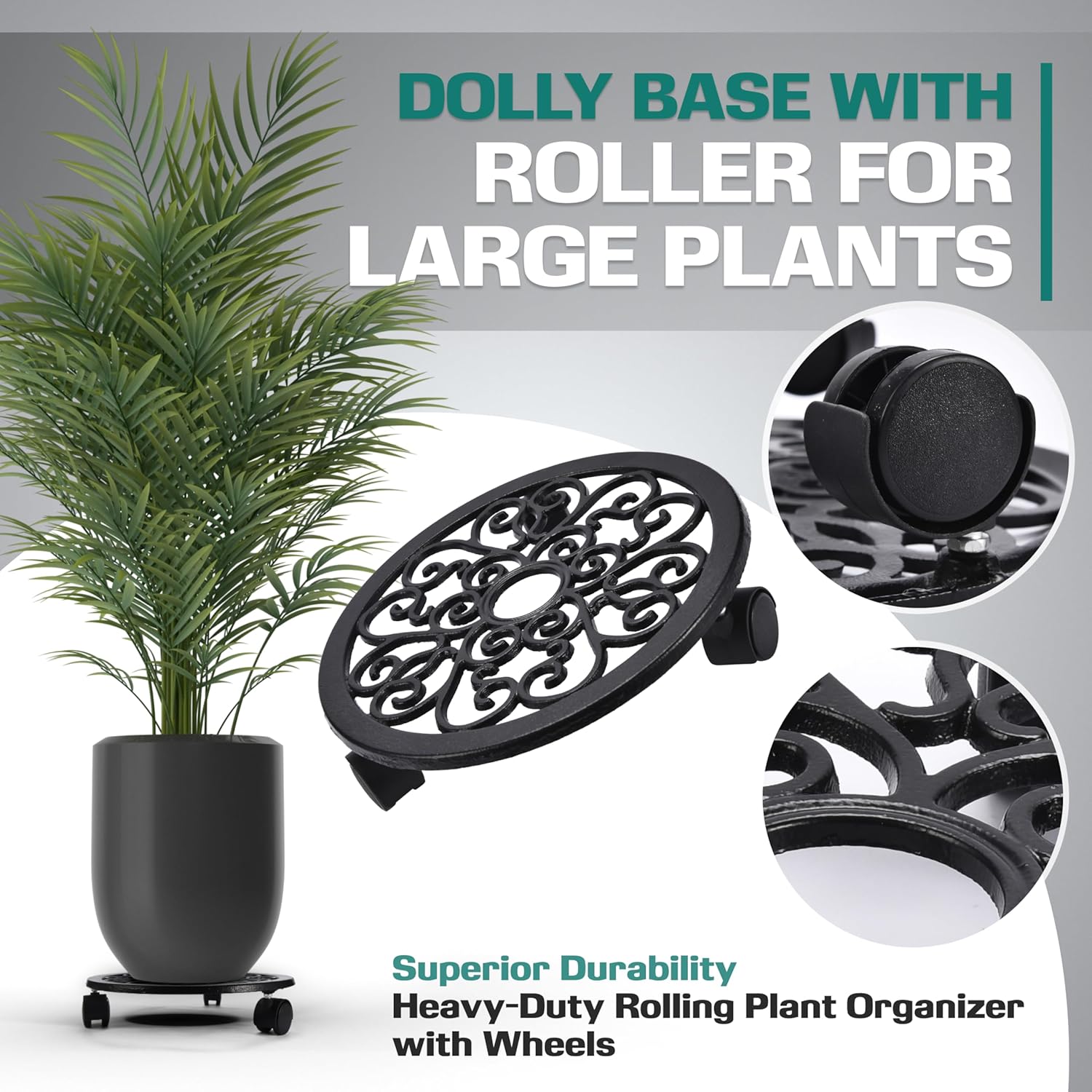 - Whether you're transporting garden pots, large houseplants, or heavy trash cans, this rolling plant caddy with its sturdy base, stands, and casters will make moving your items a breeze, even in the rain.