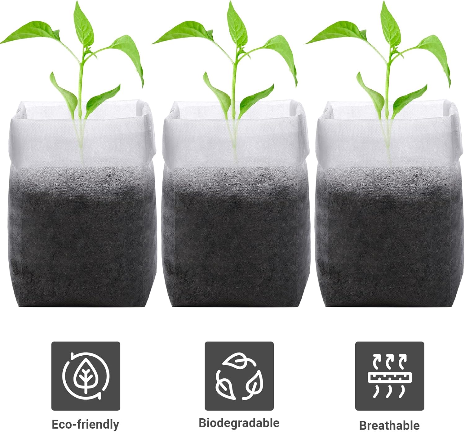 - 【HIGH SEEDING SURVIVAL RATE】The biodegradable plant bags has a small hole design, good drainage, air permeability, nutrient and moisture can be absorbed easily; biodegradable, don't need to remove the bag when transplanting, increase seedling survival rate.