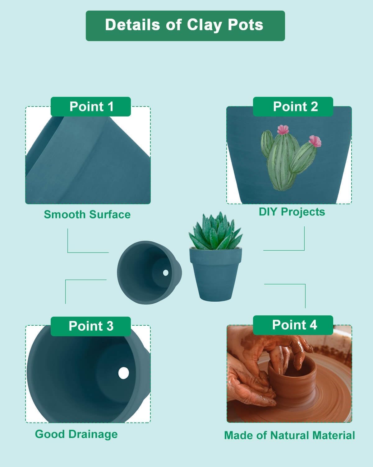 - 【Drainage Holes】 Each terracotta pottery planter comes with a small drainage hole at the bottom, increasing drainage efficiency when watering, protecting the health of your flowers or succulents.