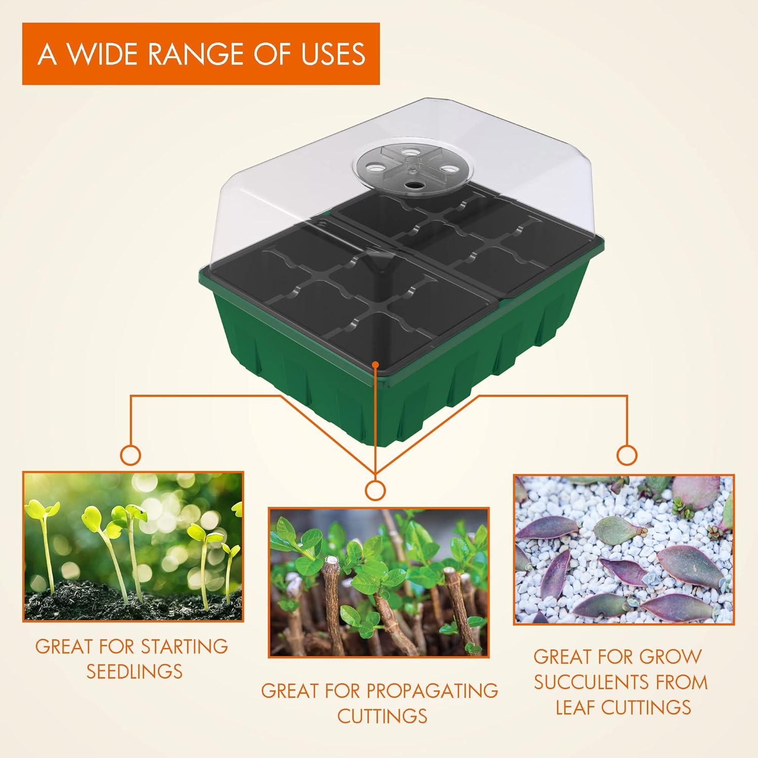 - Vented Humidity Dome - Our seed starter kit comes with an adjustable humidity dome, allowing you to easily control the humidity and temperature levels for optimal seed germination. With ventilation holes, it is easy to control the airflow and maintain the ideal growing environment for your seeds.