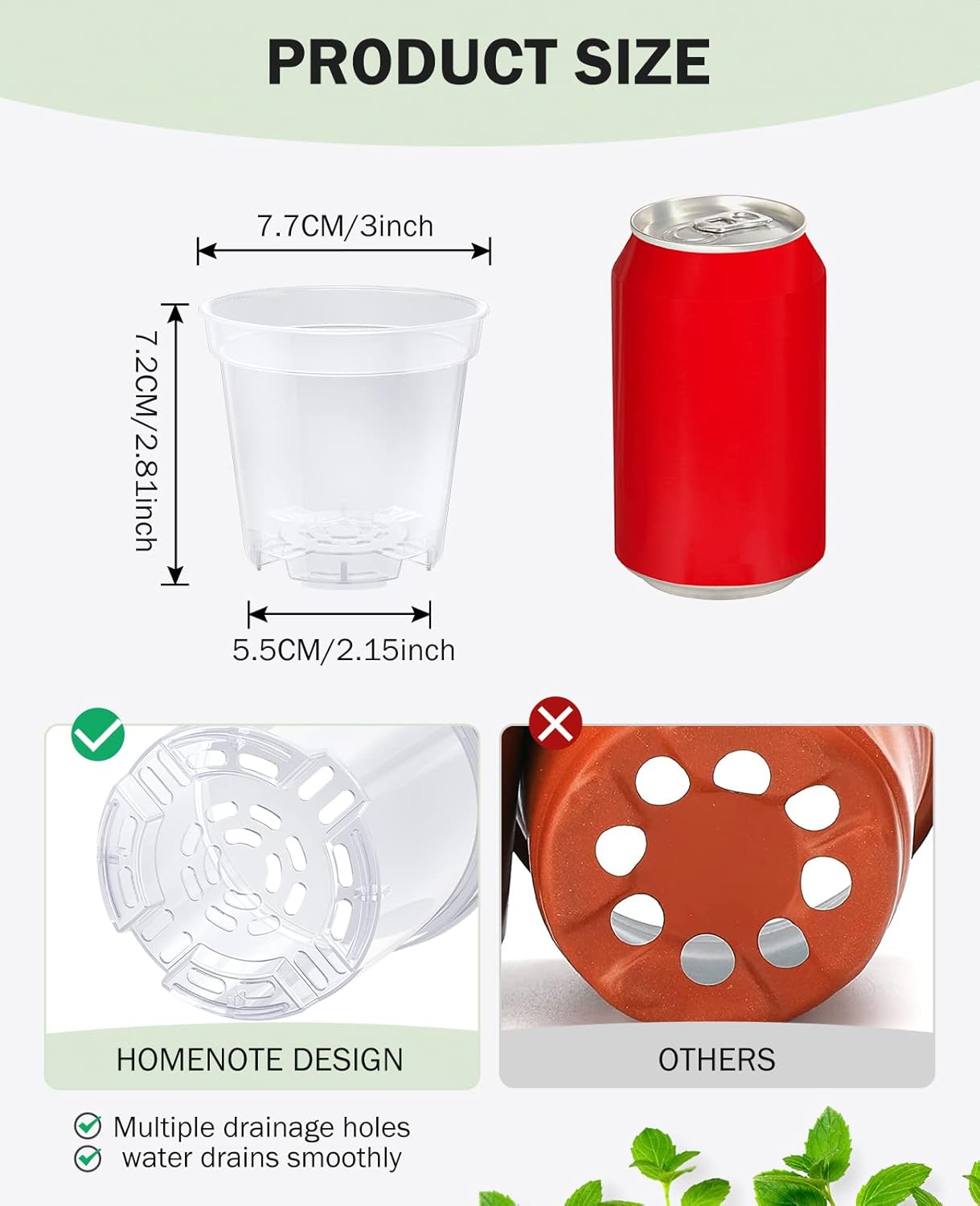 - 🌱【Transparent View of Soil and Root System】Still worried about your plant's rotten roots? Not sure how much you should water? Then you need such clear nursery pots. Compared with the "semi-transparent" flower indoor seedling pots on the market, you can have a clearer and more intuitive view of the soil moisture and the health of your plant's root system, which will help you to confirm the amount of watering and take better care of your plant's growth by these pots for plants.