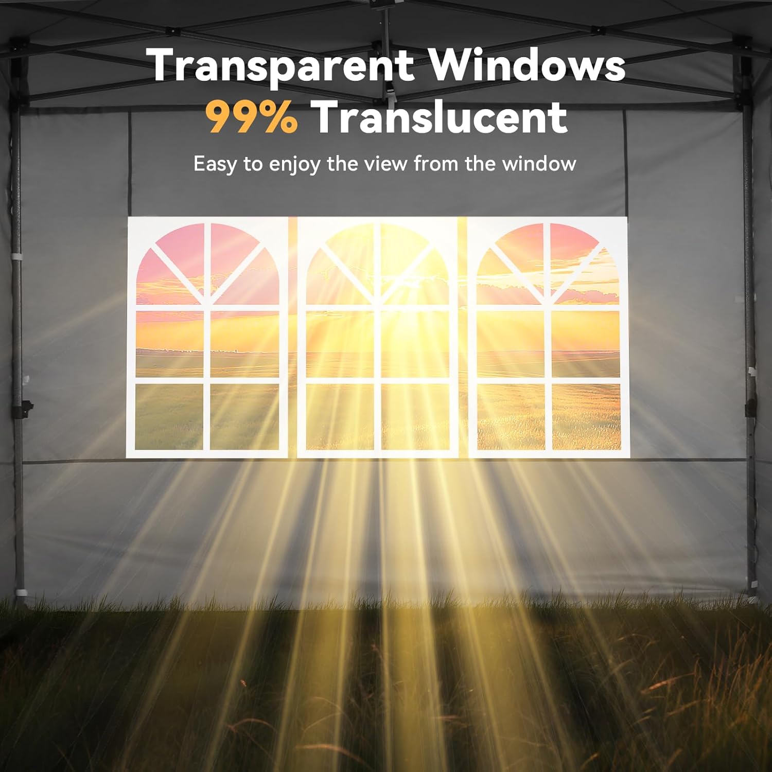 - 【WHAT'S INCLUDED】1x Commercial grade 10x10 Pop up Tent Frame, 1x 10'x10' Canopy Top Cover, 4x PU Coated Panels (3x Sidewalls with Window and 1x Sidewalls with Zipper), 4x 420D Oxford cloth PVC coated Sandbags, 8x Ground Pegs, 4x Wind Ropes, 1x Roller bag, 1x Manual. If you have any questions and doubts, please feel free to contact us, we will give you the best help. Choosing us means choosing a comfortable life.