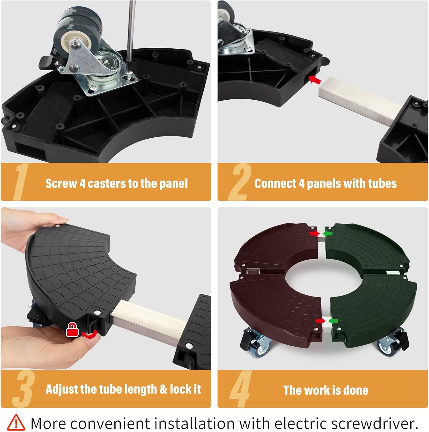 - 【EASY TO ASSEMBLE】The plant wheels caddy is very easy to assemble and requires only 4 simple steps. There will be an instruction in the package, follow the instructions to install the casters, connect the panel, and fix the buckle, the assembly of the plant caddy with wheels can be completed quickly.