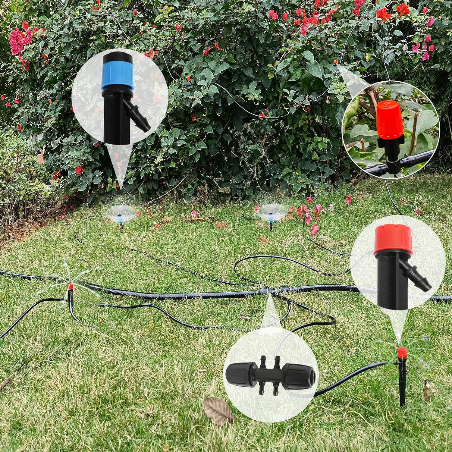 - 3 Kinds of Sprayers: We include 3 kinds of sprayers to adjust different water flow you need. We includes 10 pcs drip emitter stream, 10 pcs drip emitter vortex, 20 pcs misting nozzle.
