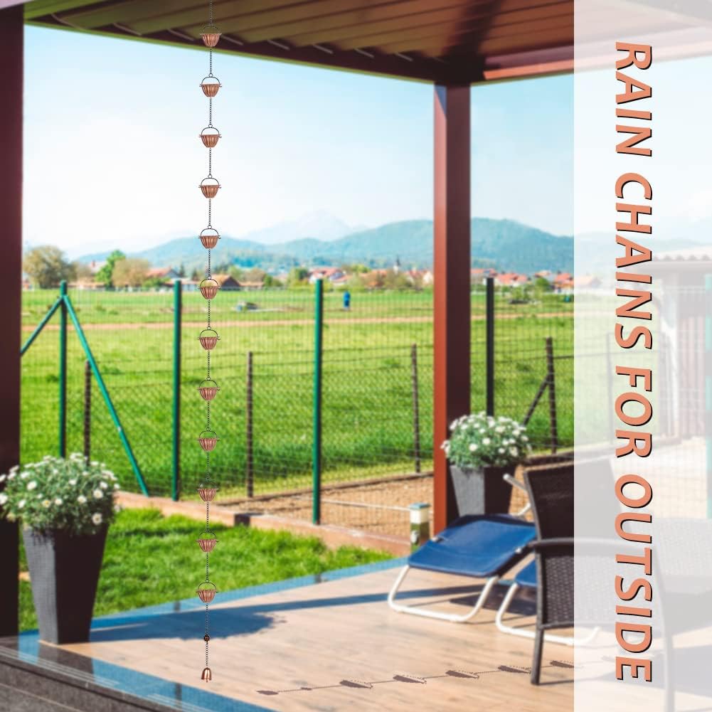 - Wide Application: The metal rain chain is designed with a bell pendant at the bottom, it will make a crisp sound as the wind collides and the rain slowly flows into the ground along the chain which is spectacular. Must be a good present to your family and friends