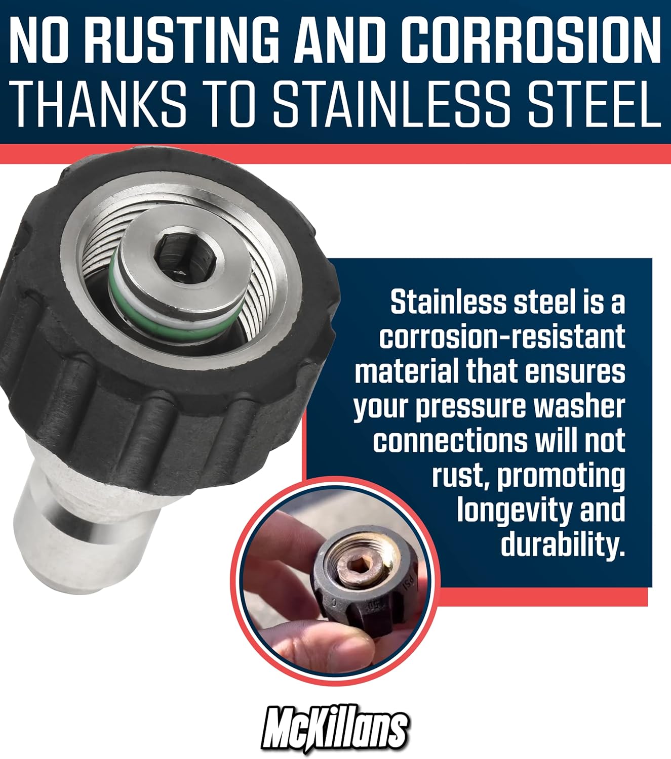 McKillans® M22-14mm Pressure Washer Quick Connect Kit, M22-14mm to 3/8" Male Female Quick Disconnect Kit for Power Washer (Stainless Steel)