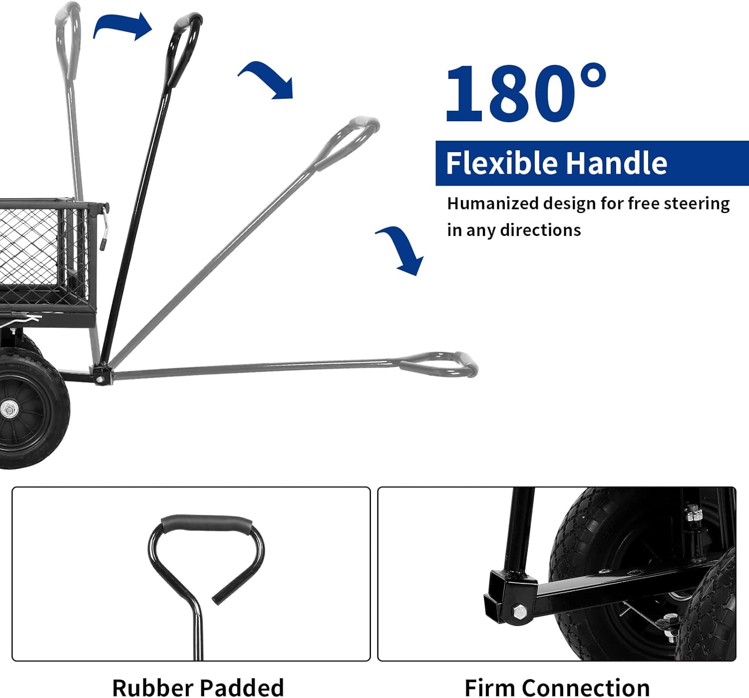 BILT HARD 400 lbs 10" Flat Free Tires Steel Garden Cart with 180° Rotating Handle and Removable Sides, 4 Cu.Ft Capacity Utility Heavy Duty Garden Carts and Wagons