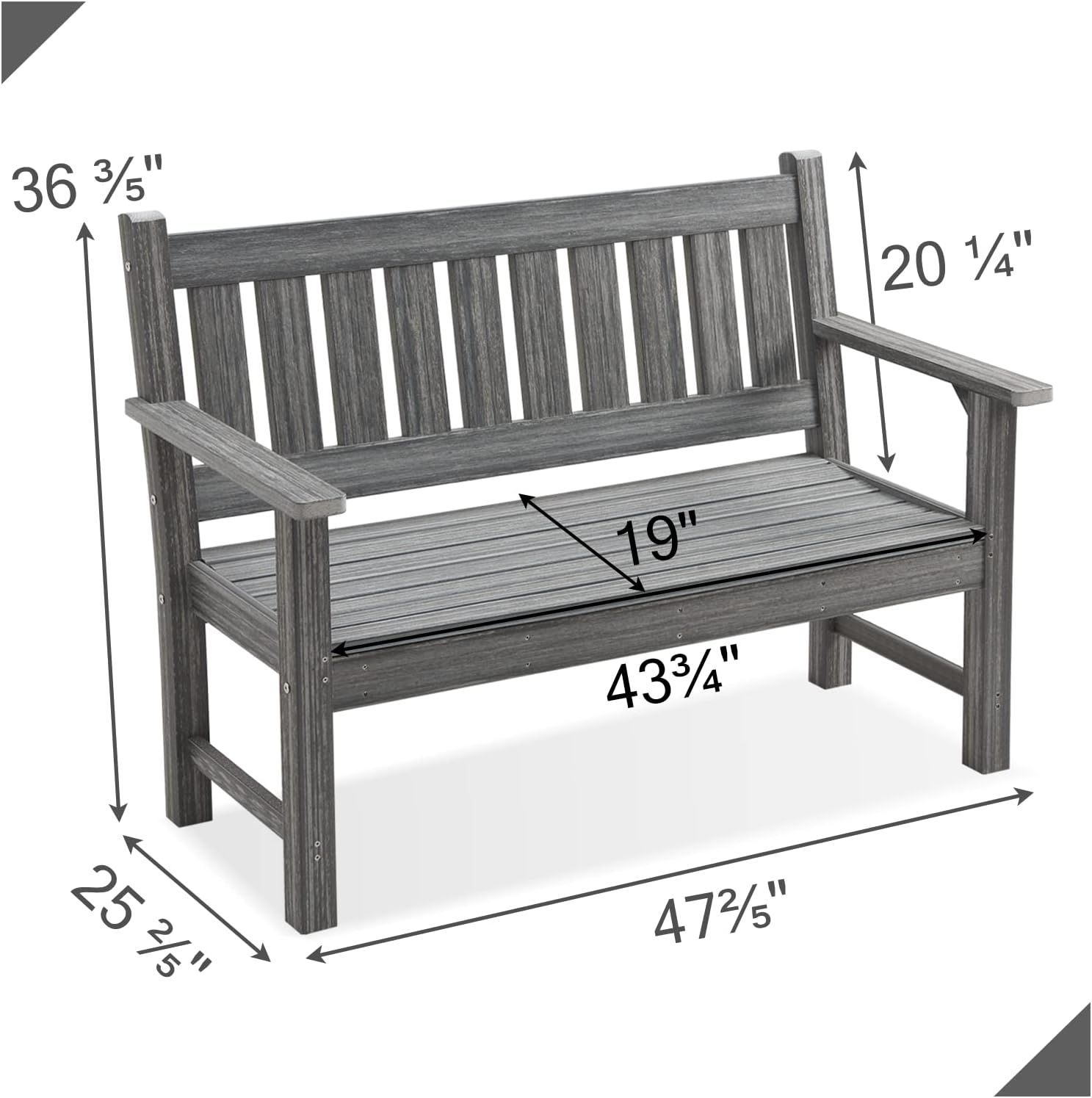Outdoor Bench, 2-Person Garden Bench, Poly Lumber Patio Bench for Outdoors, Porch, and Park (Grey)