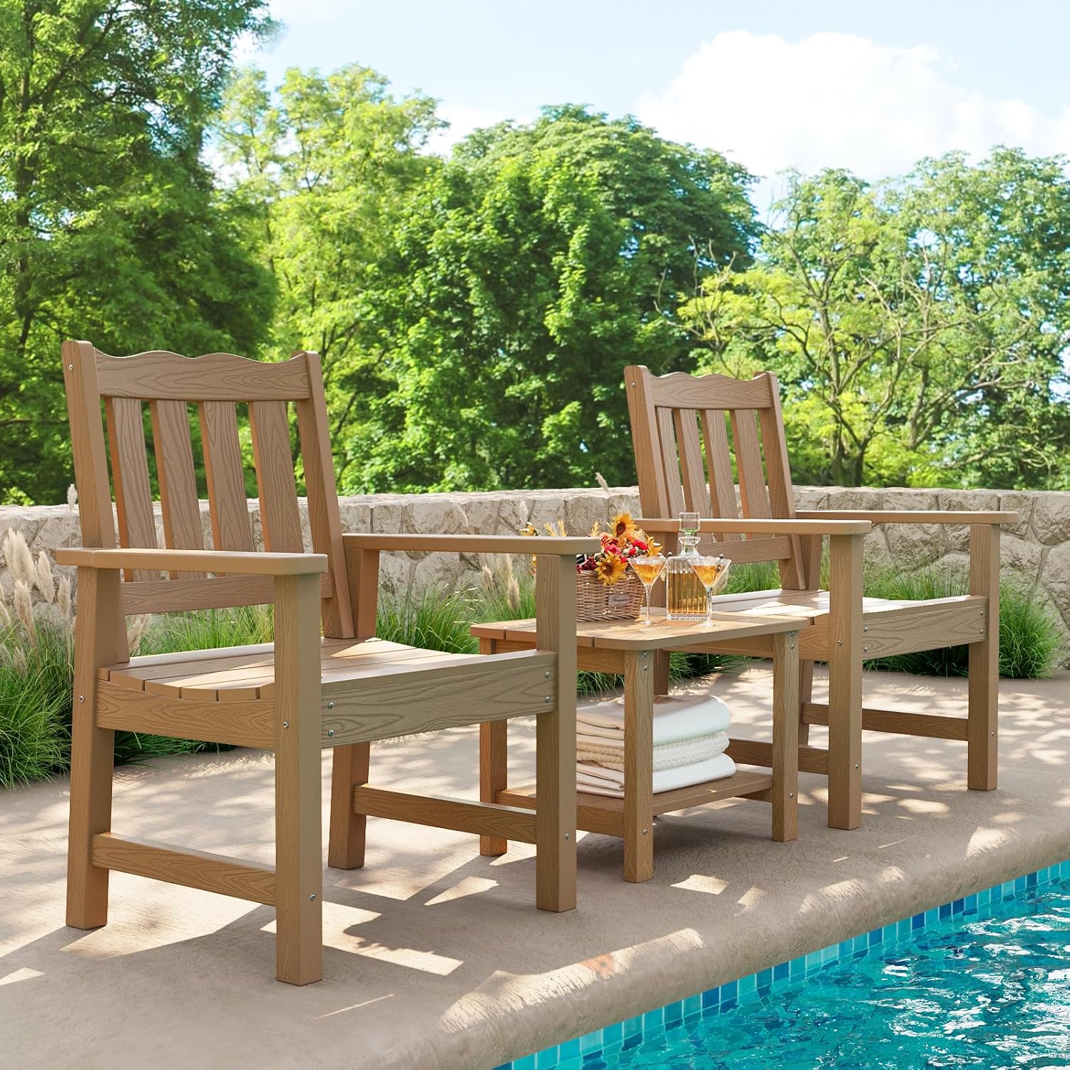 Stoog Patio Chair, All-Weather Outdoor Chairs with 400 lbs Weight Capacity, Looks Like Real Wood, for Patio, Deck, Pool and Backyard, Teak