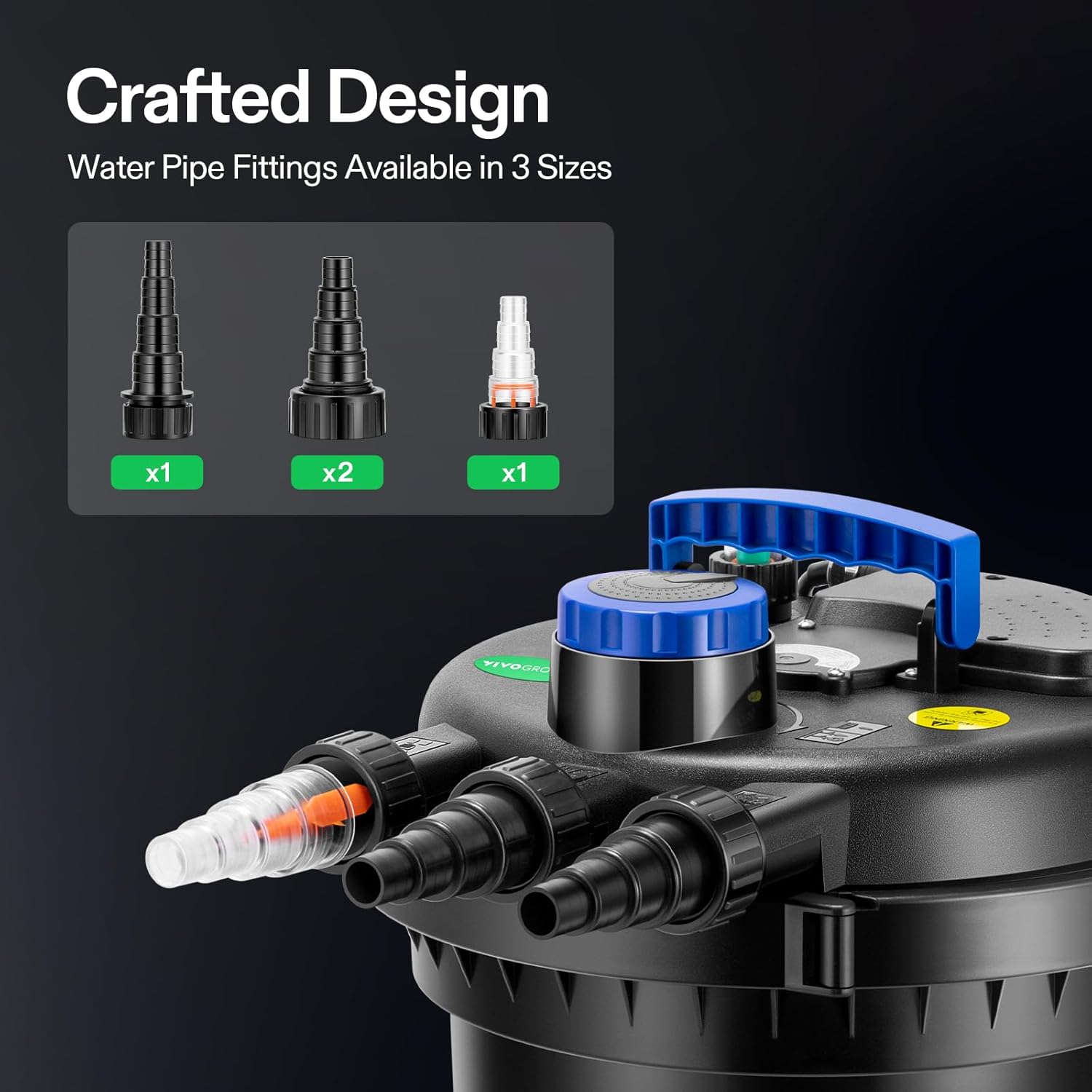 Bio Pressure Pond Filter, with 13W UV-C Light, 2630 GPH Suitable for Koi Ponds up to 1300 Gallons or Landscape Pools up to 2600 Gallons