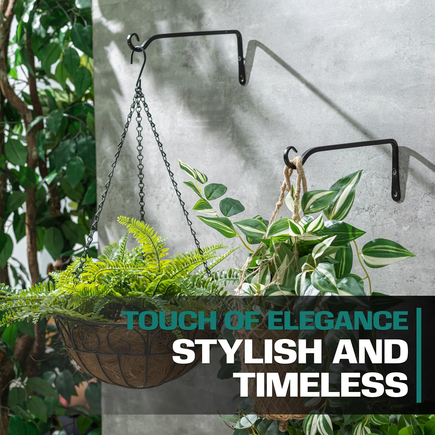 - Durable and Weatherproof - Crafted from solid wrought iron with a powder-coated matte black finish, our plant brackets are built to withstand the elements for long-lasting use.