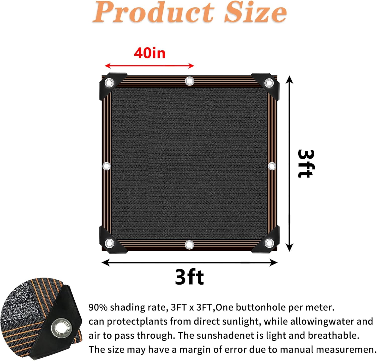 Shade Cloth 90% Sunblock Net for Garden Patio,Shade Sails -for Plants Greenhouse Outdoor Pergola Lawn Swimming Sun Protection Covers for Kennel Chicken Coop Easier to Hang Neting Cover, 3x3 FT