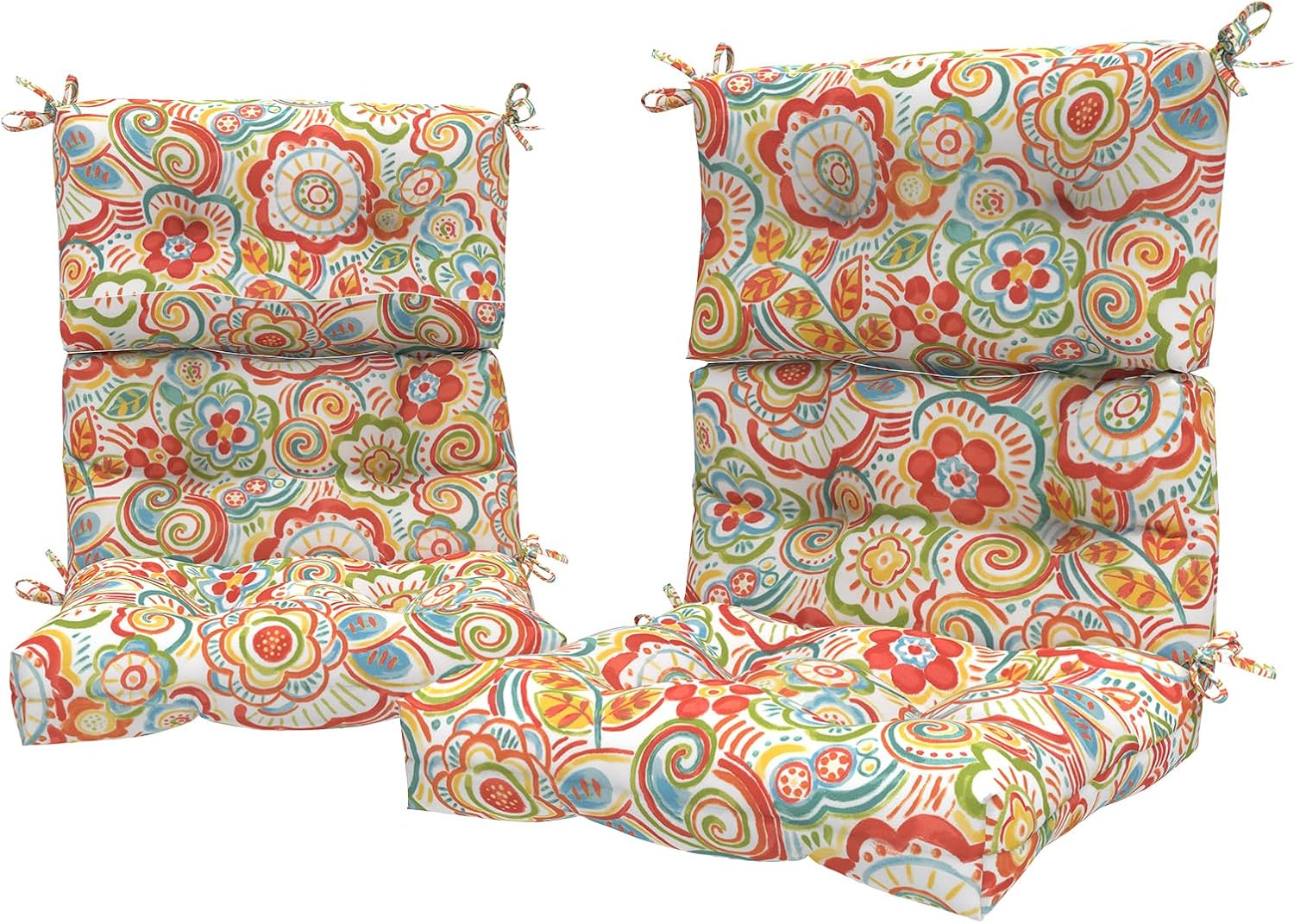 LVTXIII Outdoor Seat/Back Chair Cushion Patio Tufted High Back Cushion, Seasonal Replacement Rocking Chair Cushion with Ties (22” W x 20D”, Set of 2, Flower Red)