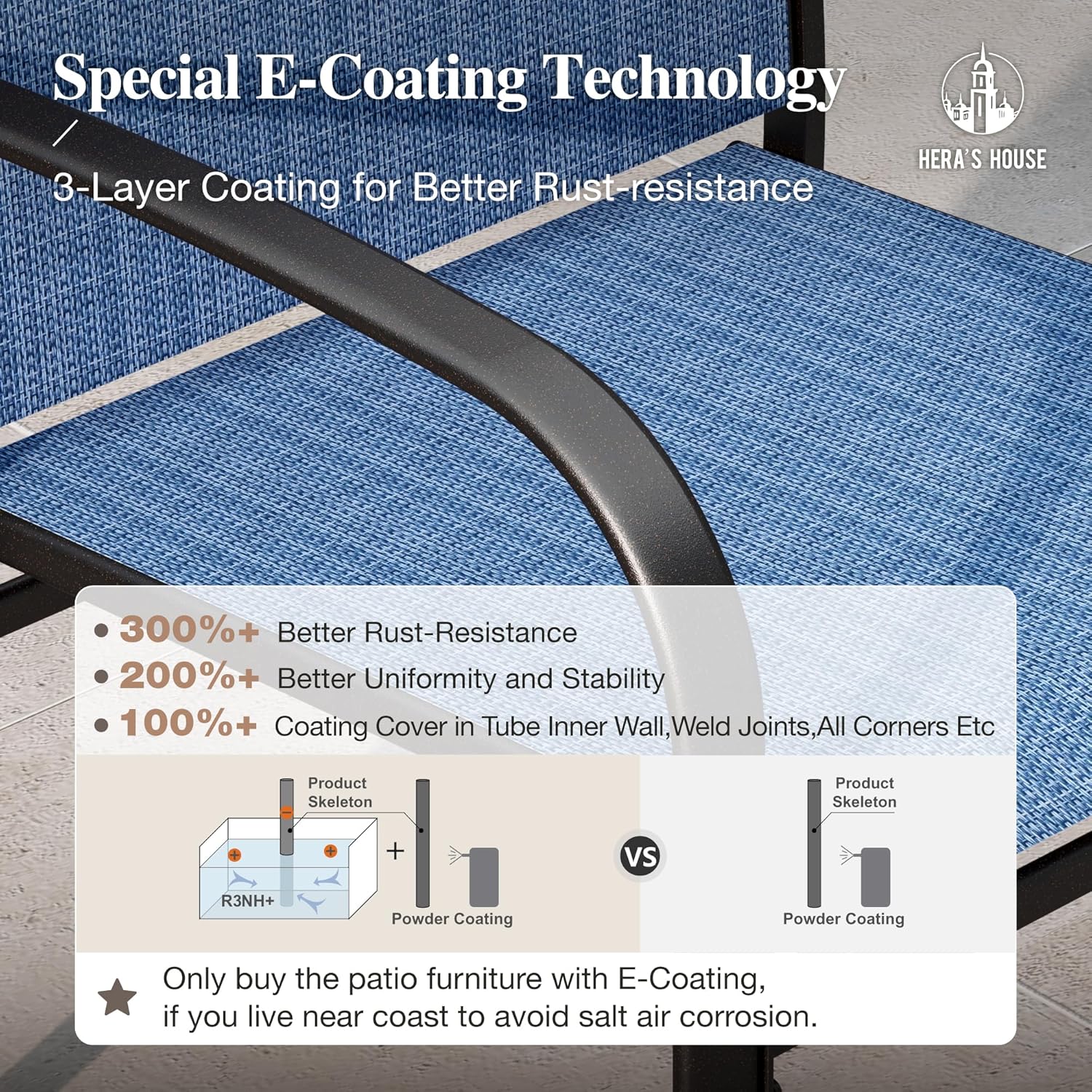 HERA'S HOUSE 5 Pieces Patio Dining Set, Outdoor Table and Chairs Set for 4, 4 x Blue Textilene Dining Chair, 37" Square Metal Dining Table, for Lawn Garden Backyard Deck