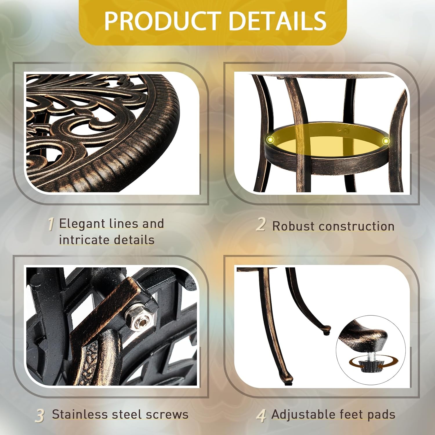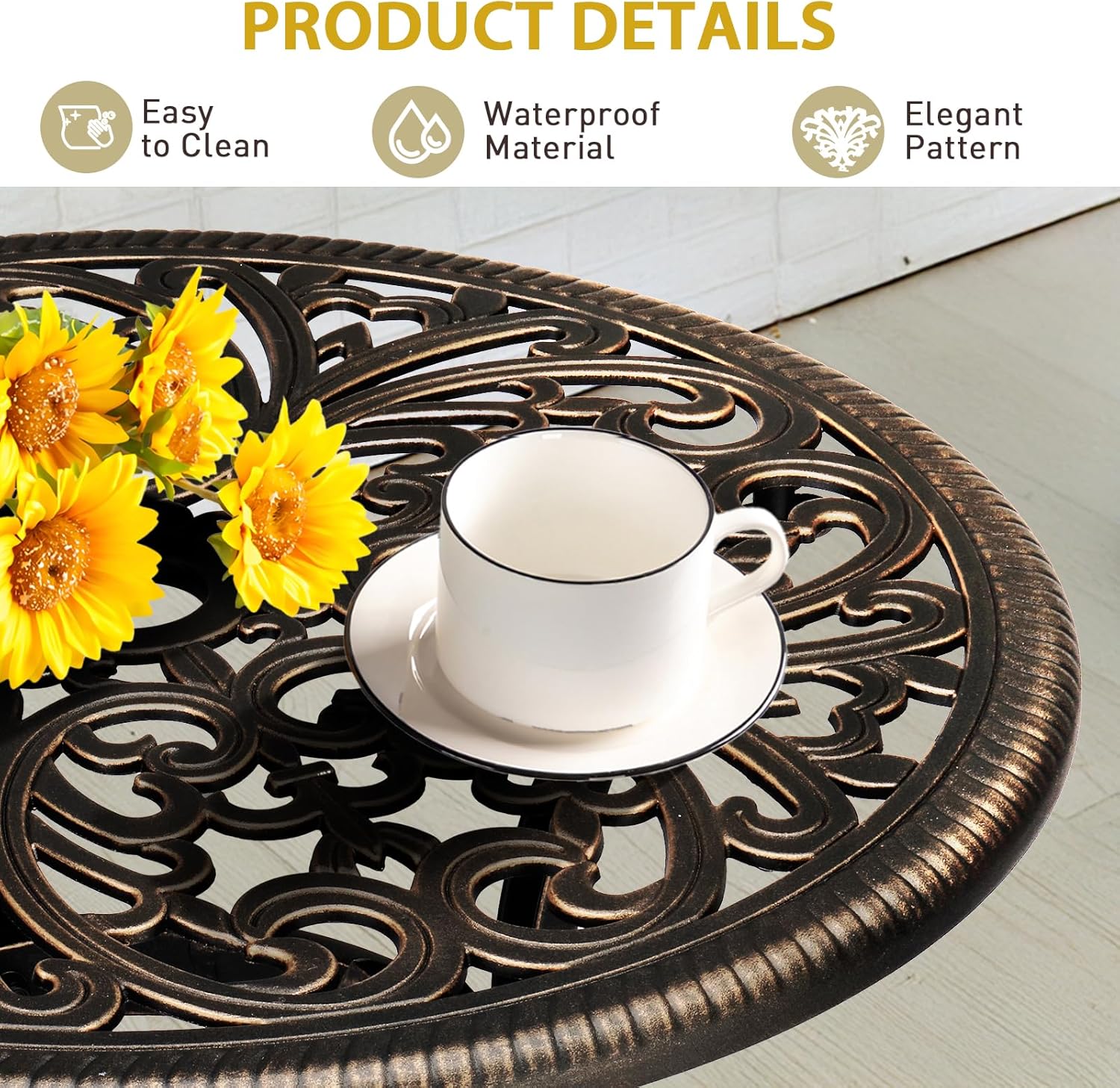 - PREMIUM CAST ALUMINUM: Crafted from high-quality cast aluminum, this round bistro table is built to withstand the elements. With exceptional durability, weather resistance and rust-proof features, it ensures long-lasting outdoor enjoyment with minimal maintenance required