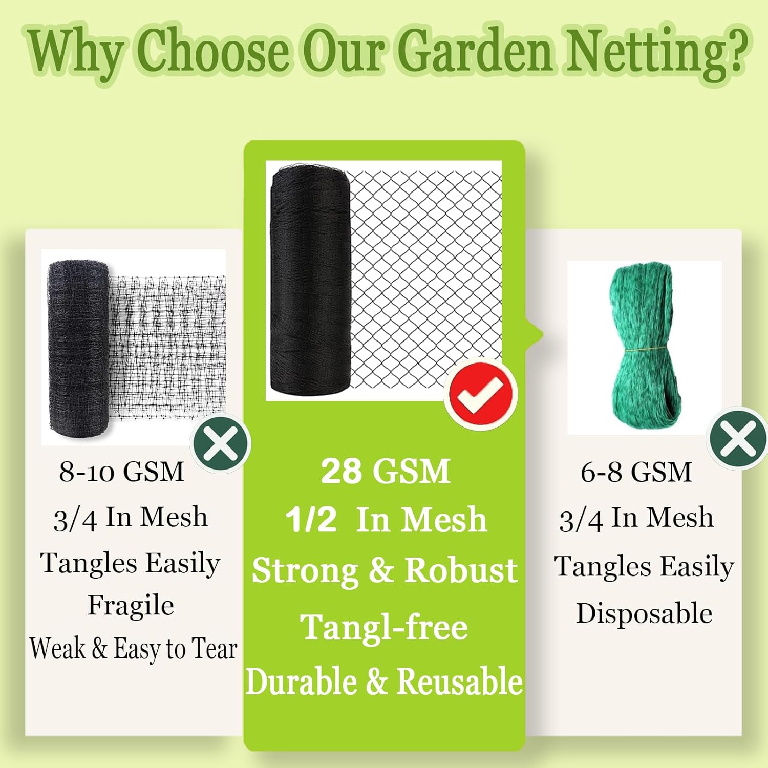 - Protection: Garden bird netting not only protects your plants from birds of all sizes, but can also be used as garden fence animal barrier to prevent small animals such as deer, rabbits, squirrels, cats, and dogs from damaging your harvest.
