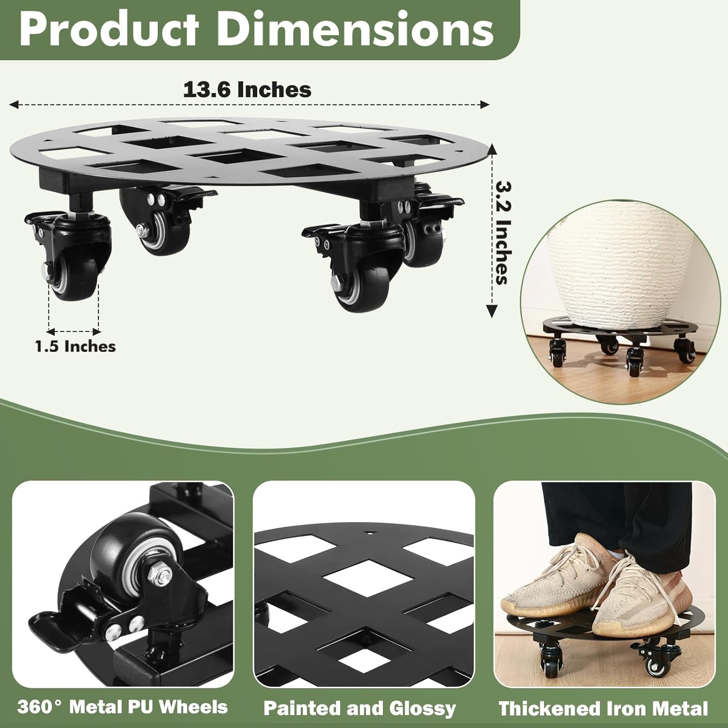 - Keep the Floor Clean: With 1 packs of clear plastic plant saucers, they can catch the water and prevent getting wet when watering. The metal rolling plant caddy will help keep a clean floor and avoid water stains.