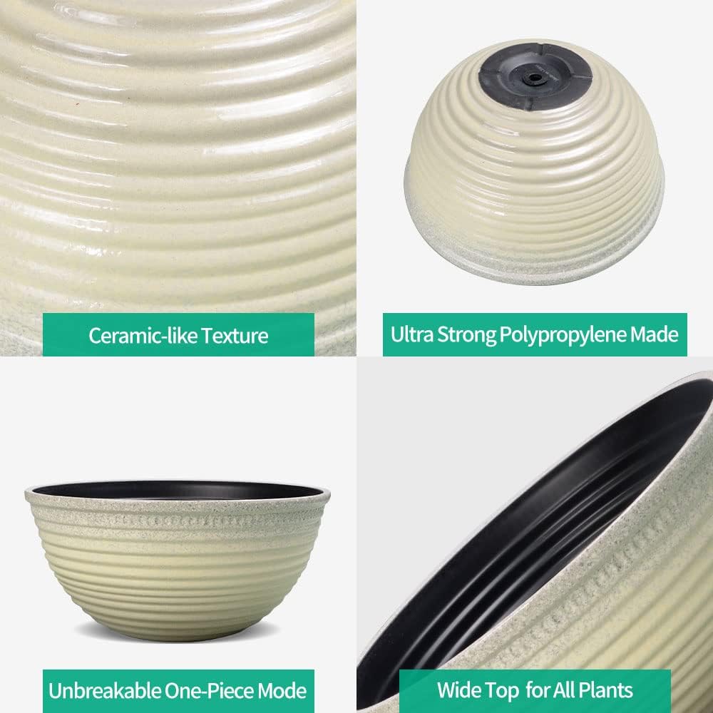 2 Pack 10 Inch Plant Pots,Durable Decorative Flower Pots Planters with Drainage Hole for Indoor and Outdoor Plants,Flowers,Succulents, White