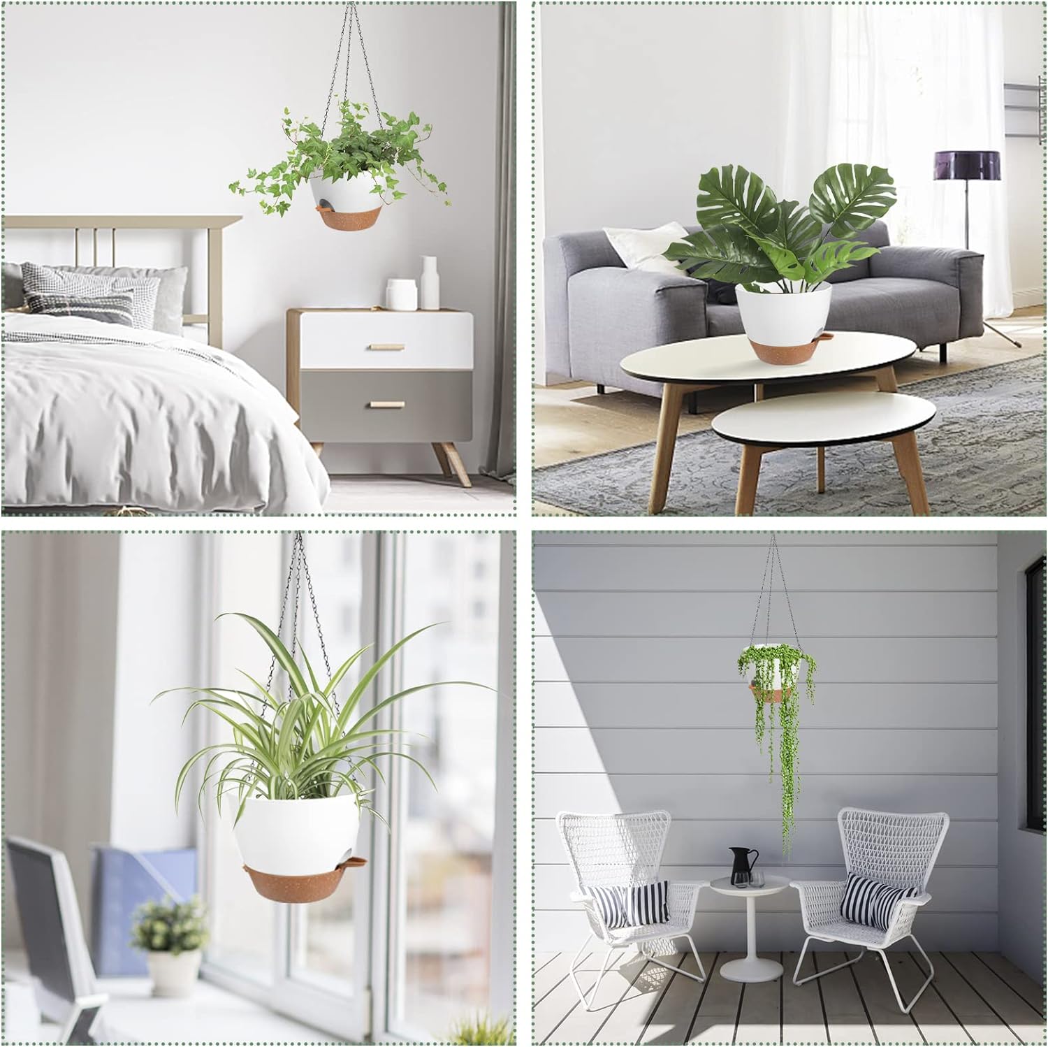 - Removable Trays - Hanging pots for plants indoor tray can be removed as a reservoir for self-watering, where excess water from the self-watering plant pots is drained into the tray, which stores a certain amount of water for the plants (7-14 days). You don't have to worry about your plants running out of water when you're away on a business trip or traveling.